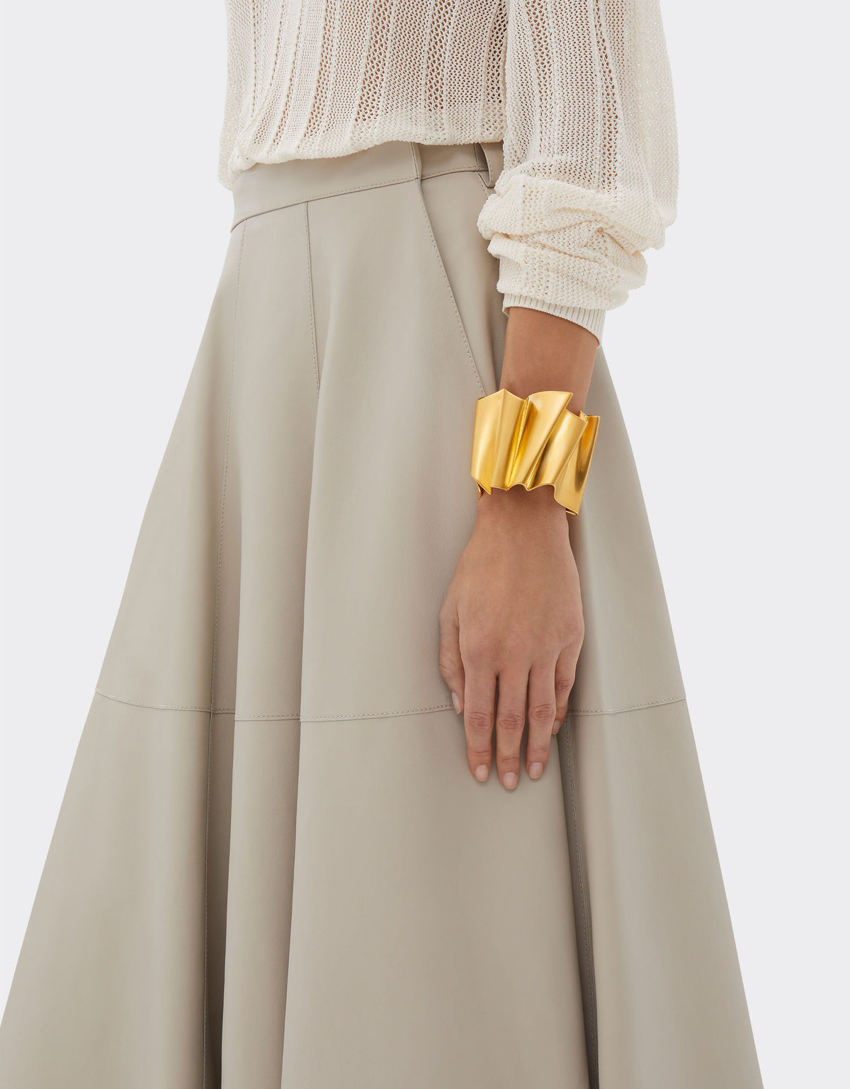 These Rigid Brass Bracelets by Ferrari are distinguished by a radiant satin gold finish that elevates their sculptural form. The sinuous lines reflect the brand’s celebration of movement, while the embossed detailing enhances the bold, architectural profile. Designed with Ferrari’s signature precision, this bracelet merges modern craftsmanship with timeless elegance, creating a striking piece that conveys both strength and refinement.
