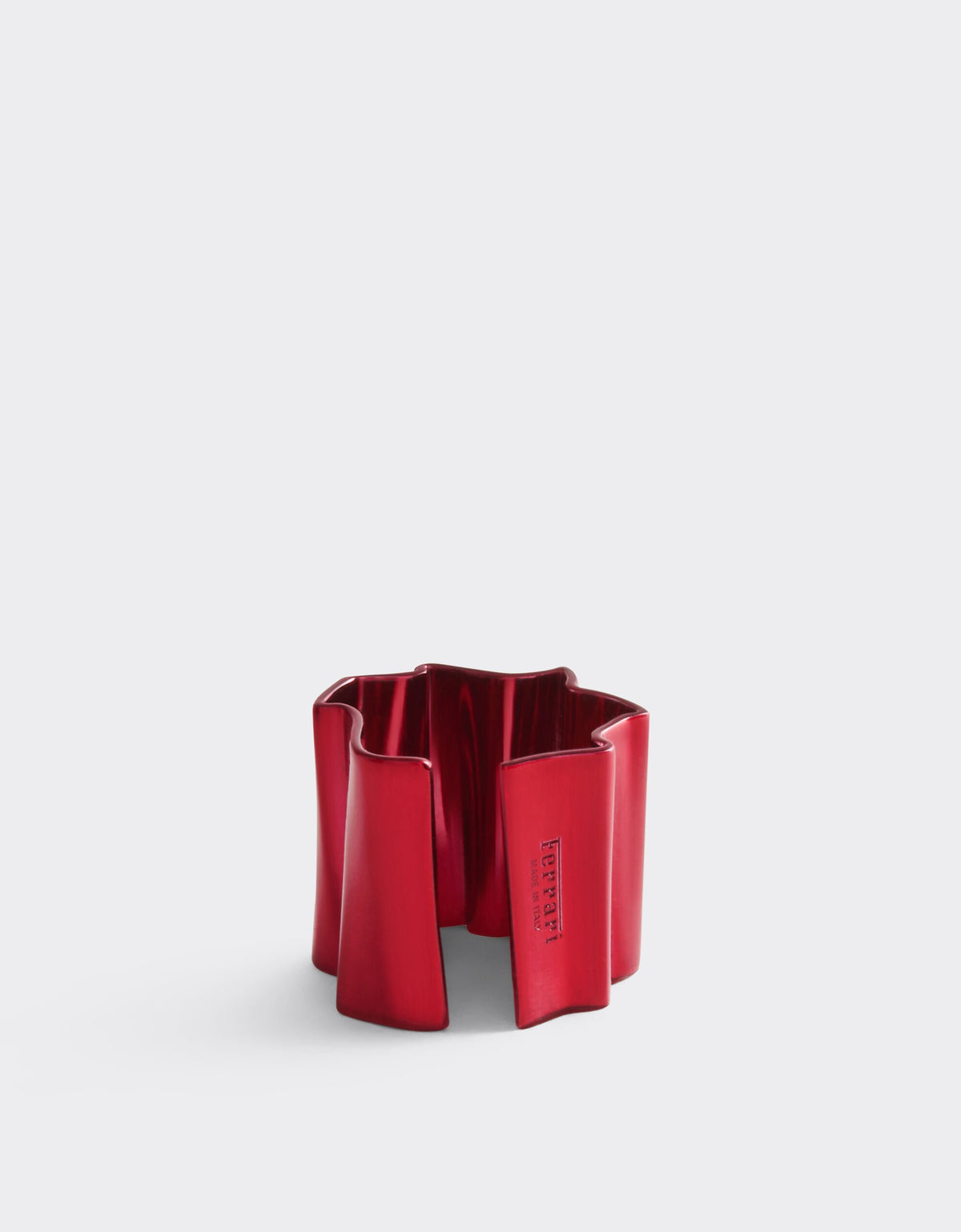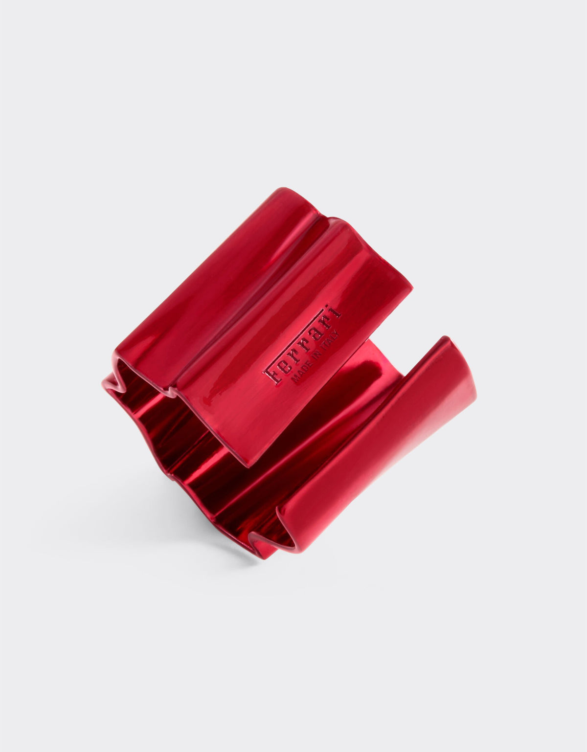 This Metallic Ring by Ferrari distills the brand’s passion for design into a smaller, refined form. Rendered in matt metallic red with a glossy enamel finish, the ring recalls the paintwork of Ferrari’s legendary cars from the Officina. Its pleated motif symbolizes dynamism and movement, paying tribute to Maranello’s heritage of speed and excellence while offering a contemporary luxury accent.