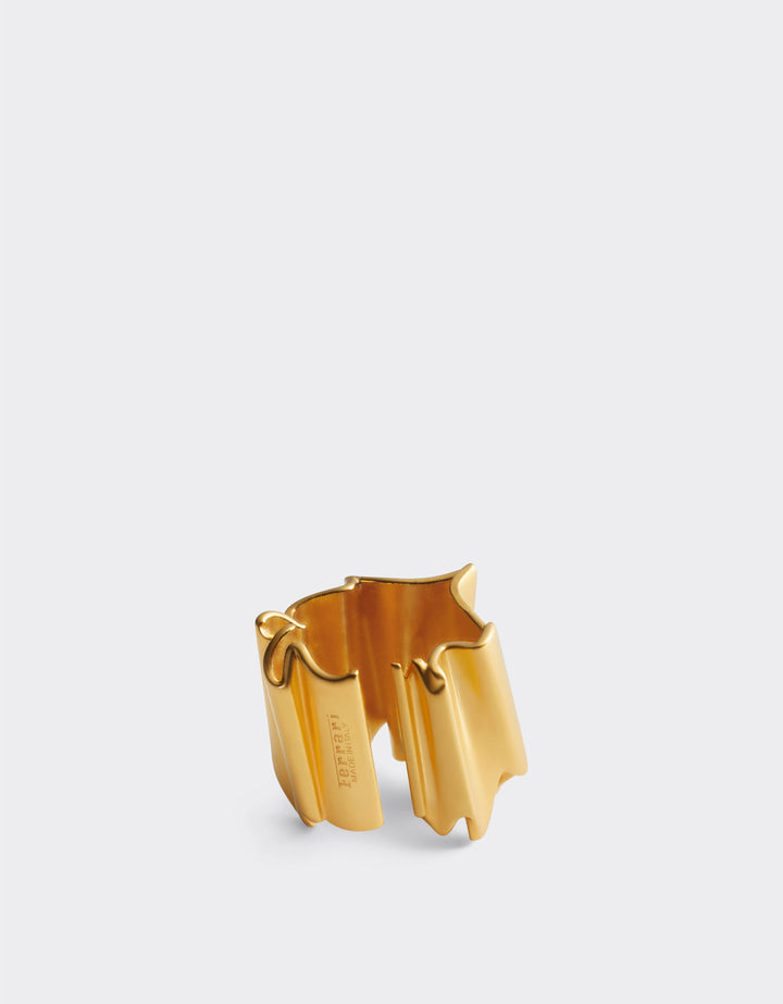 This Brass Ring by Ferrari radiates bold sophistication, elevated by its luminous satin gold finish. The embossed motif recalls the fluidity of pleated fabrics, a recurring inspiration in the collection, while its strong geometric presence highlights the brand’s dedication to sculptural design. With its refined Italian workmanship, this piece conveys both elegance and passion, embodying Ferrari’s spirit of movement and artistry.