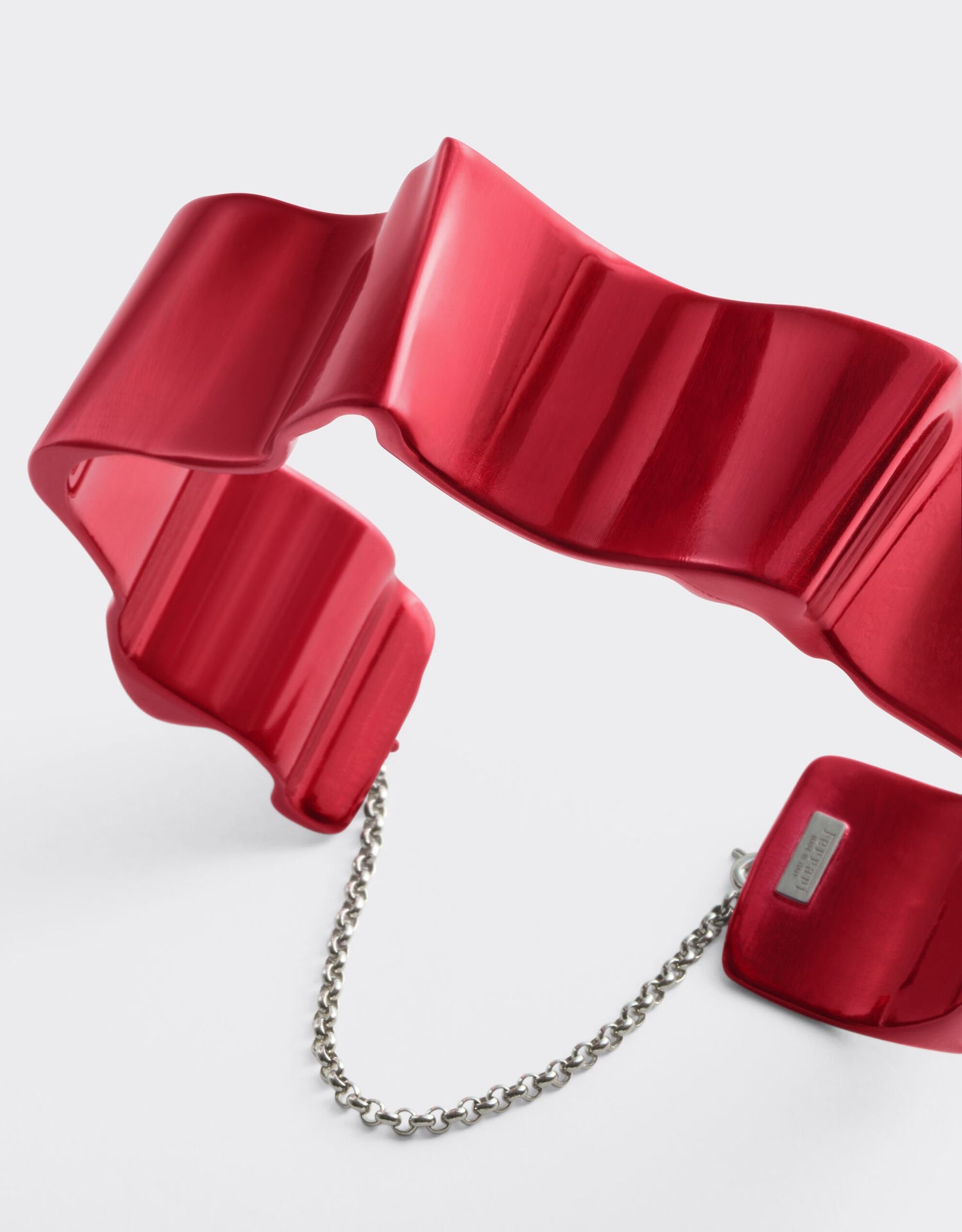 This Metallic Choker by Ferrari pays homage to the energy and experimentation of the brand’s design codes. Cast in brushed brass with a matt metallic red finish, it is further enhanced with glossy enamel to create a rich visual and tactile effect. The pleated sculptural form reflects the dynamism at the core of Ferrari, resulting in a necklace that exudes strength, innovation, and bold aesthetic impact.