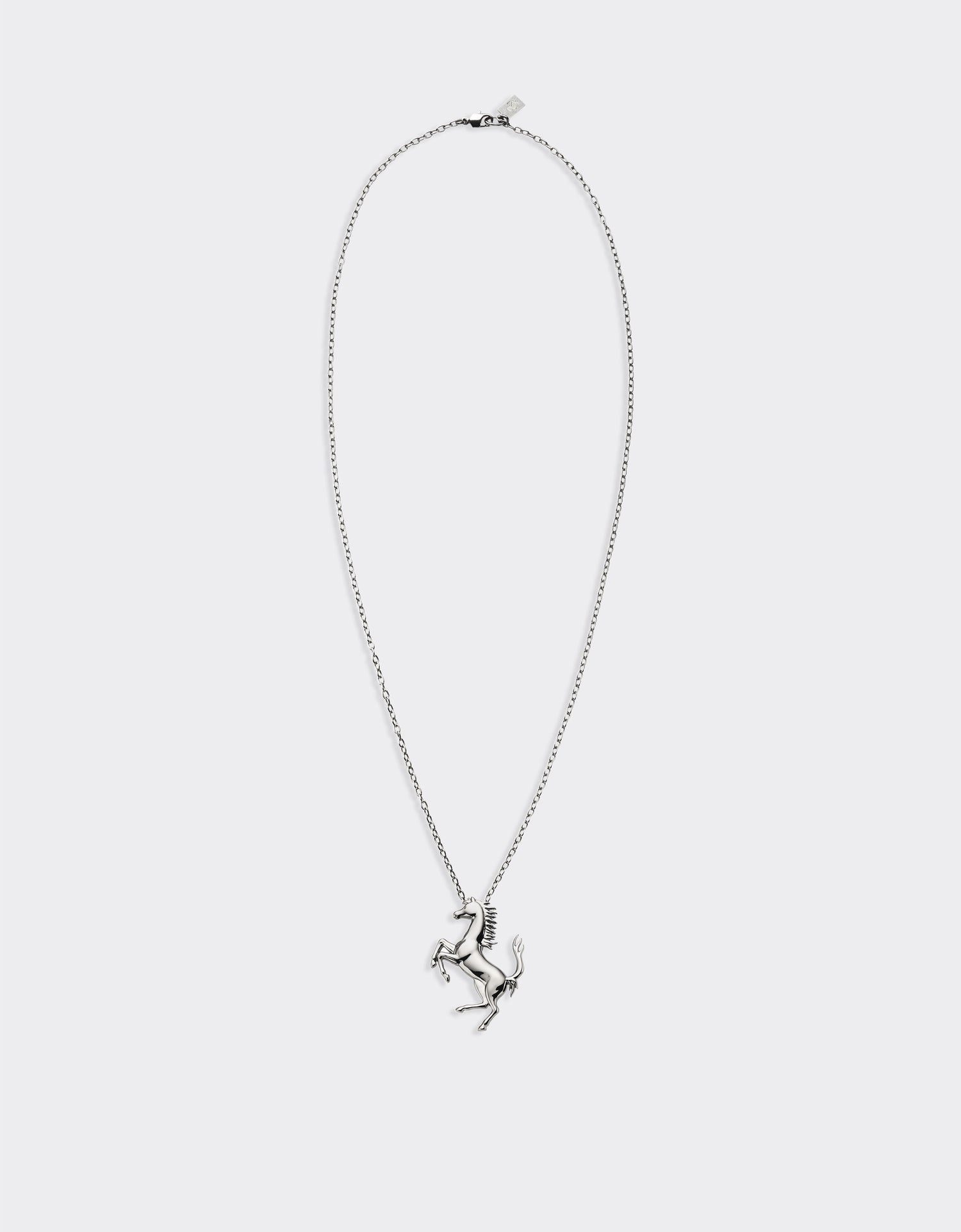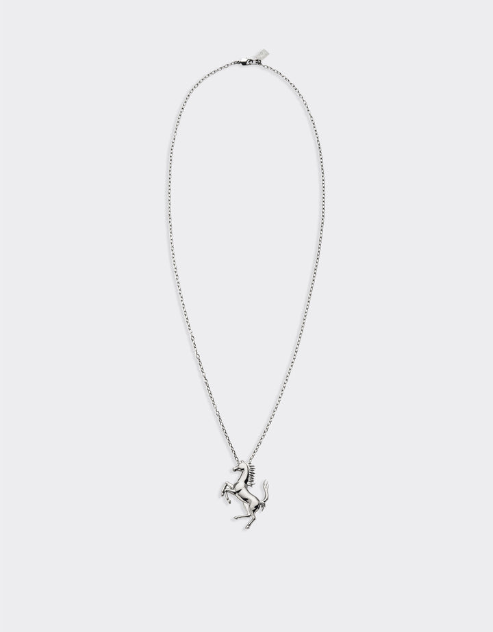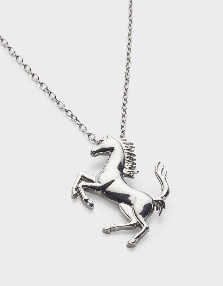 Handcrafted in brass with Prancing Horse pendant. Available in matt black or polished ruthenium finishes. Pendant length: 4.8 cm. Chain length: 70 cm. Made in Italy. Presented in customised red gift box.