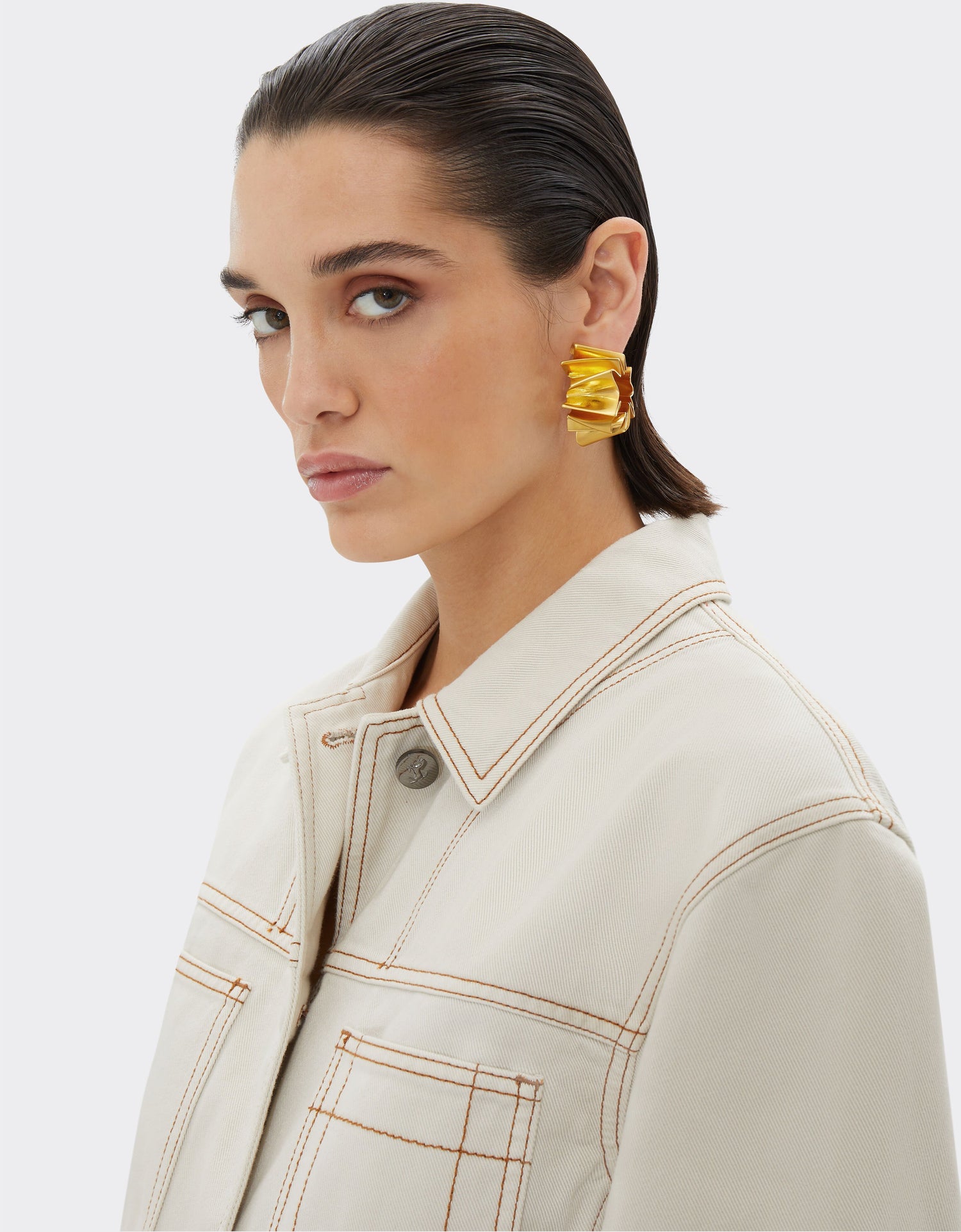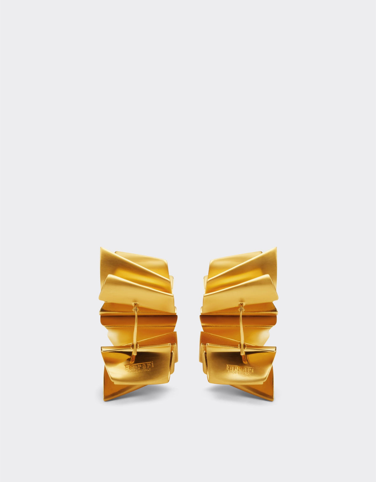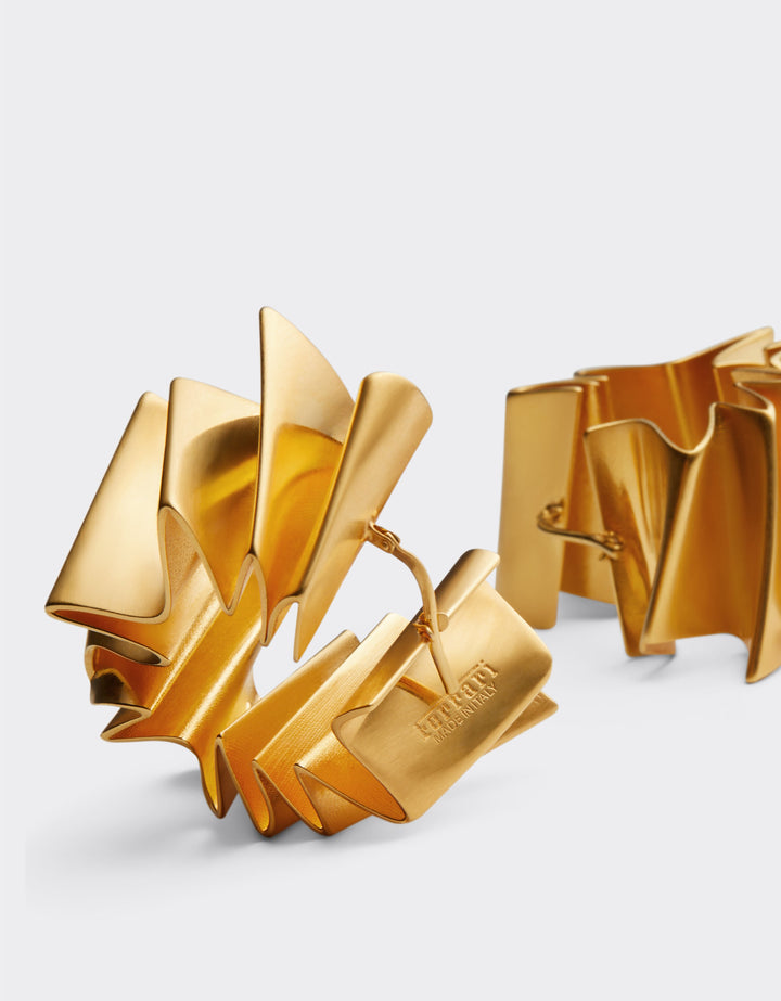 These Brass Earrings by Ferrari radiate sculptural elegance, highlighted by their luminous satin gold finish. Inspired by pleated forms that suggest motion and rhythm, the design captures the brand’s enduring fascination with fluidity. A symbol of strength and refinement, they merge Italian goldsmithing excellence with cutting-edge innovation, resulting in earrings that exude both tradition and modern artistry.