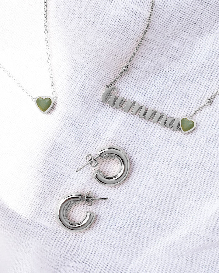 This Birthstone Name Necklace by Abbott Lyon is a stunning and unique accessory, handcrafted to be completely yours. As part of the iconic Name Jewelry collection, you can create a bespoke piece by personalizing it with up to 12 characters in the best-selling signature font, complemented by a beautiful, heart-shaped birthstone of your choice. This necklace is a personal statement of self-expression and a heartfelt gift for a loved one. Its elegant silver finish provides a timeless backdrop for the vibrant birthstone, creating a piece that is both personal and stylish. The natural stones ensure each necklace is truly one-of-a-kind, with slight color variations.