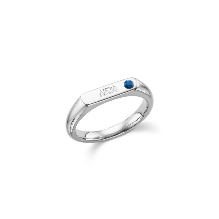 Birthstone Signet Custom Name Ring (Silver)