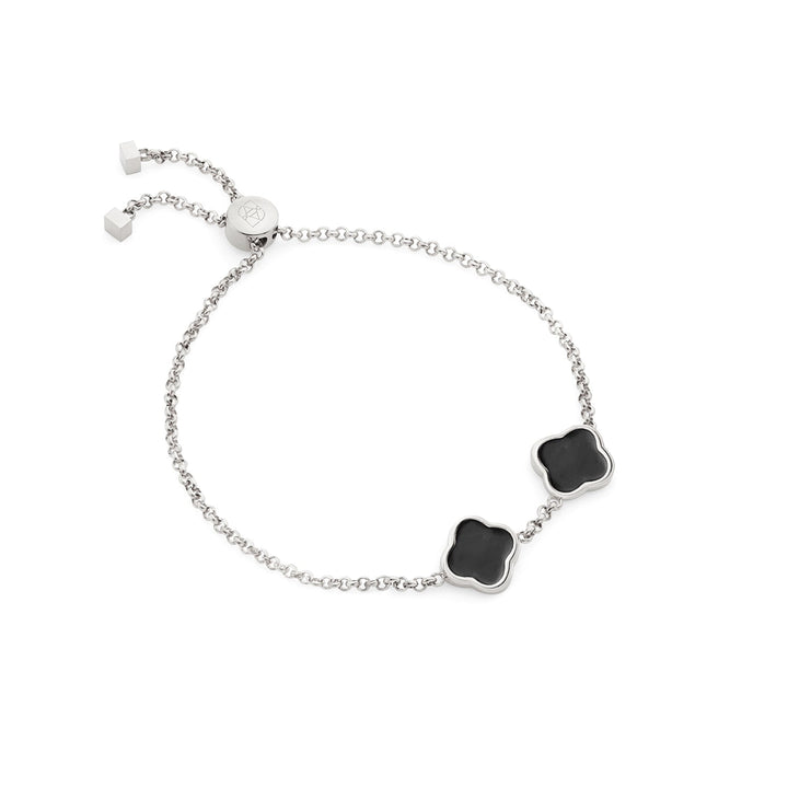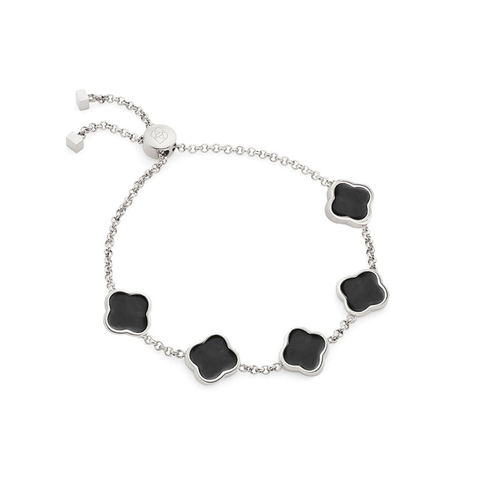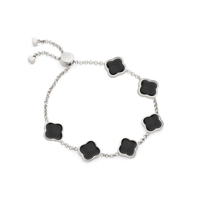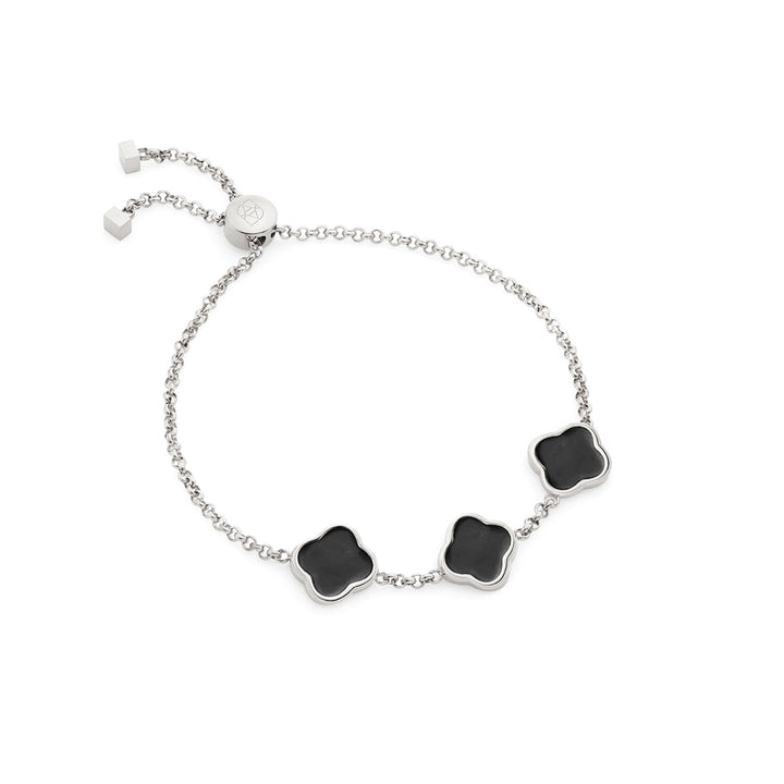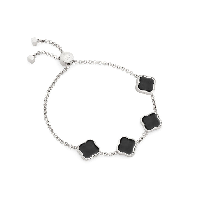 Black Enamel Clover Custom Name Bracelet (Silver)
