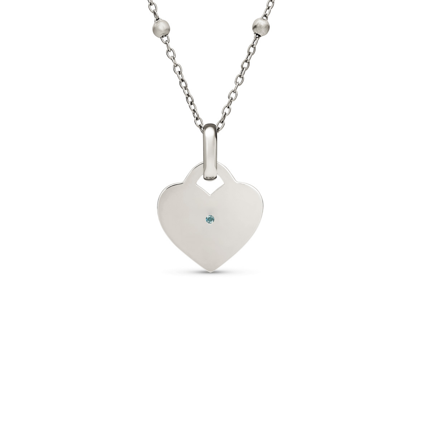 Blue Crystal Heart Token Necklace (Silver)