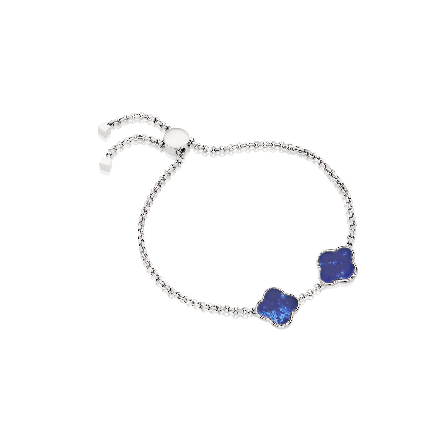 Handcrafted from polished stainless steel with a blue lace agate stone, this bracelet features a 12mm clover and a 4mm initial. It has a fully size-adjustable toggle up to 9.8 inches.