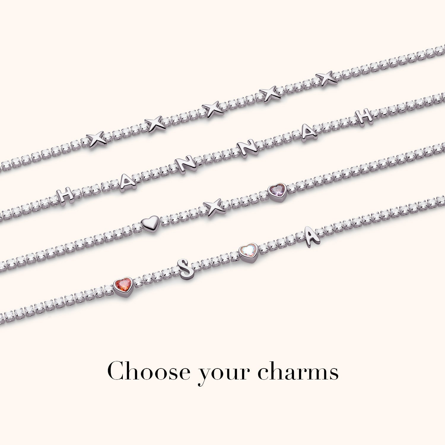 This Crystal Fixed Charm Necklace by Abbott Lyon is a beautiful and customizable tennis necklace. It features sparkling clear cubic zirconia stones and can be personalized with your name, initials, birthstones, or icons. This designer-inspired piece is a perfect way to add a unique and personal touch of sparkle to your look.