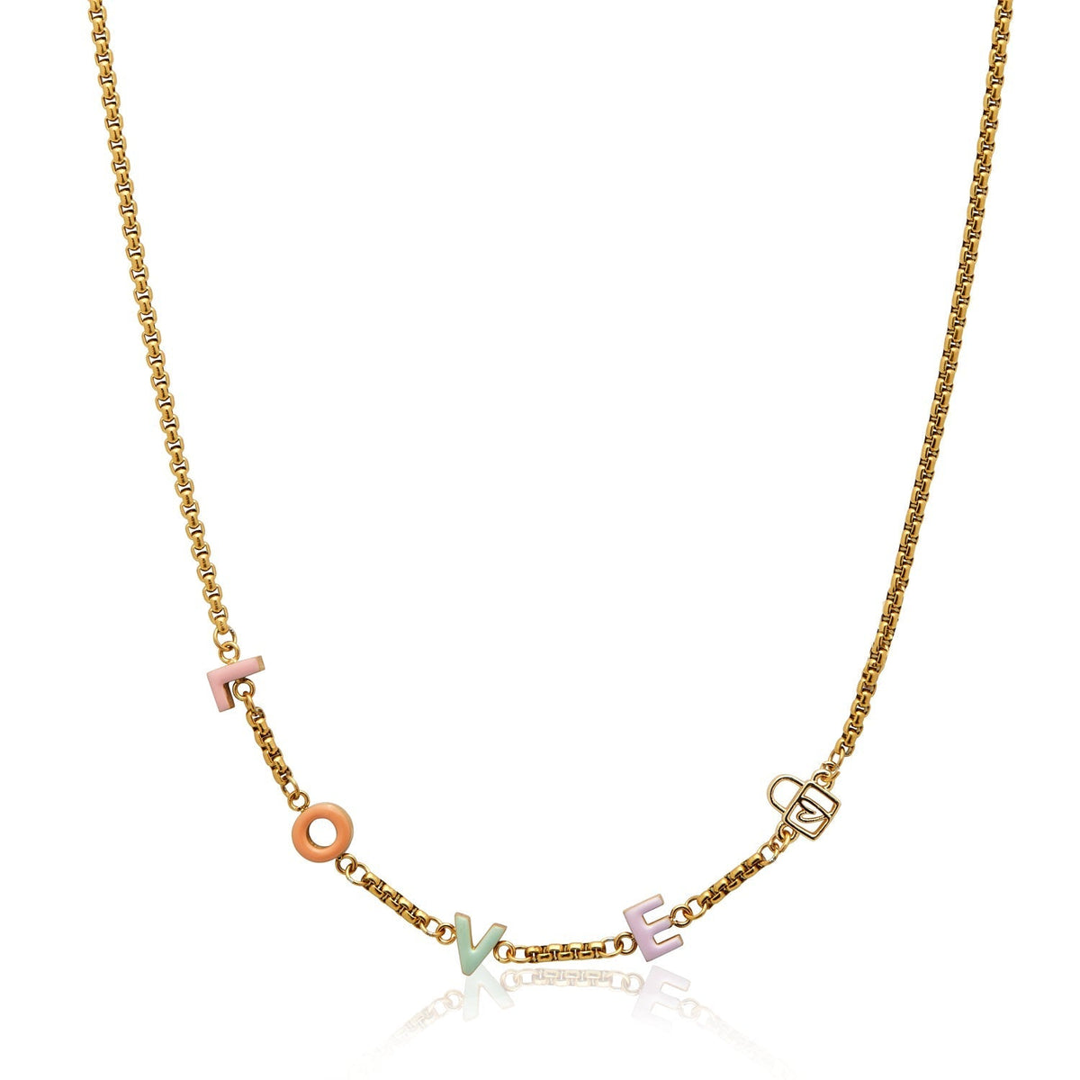 This necklace is made from luxury 18k gold-plated stainless steel and enamel. The chain is adjustable from 18 to 20 inches and features a lobster clasp with an extender.