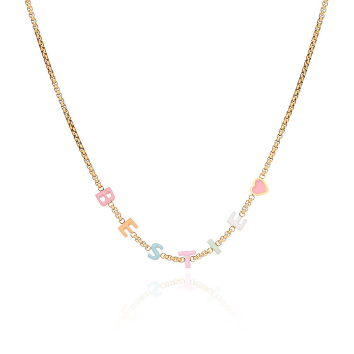 This Custom Enamel Name Necklace by Abbott Lyon is a dreamy and colorful update to their best-selling custom name necklace. This unique, luxury, and bespoke piece is perfect for adding a playful pop of color to your look. It can be personalized to celebrate yourself or someone special, featuring a lobster clasp with an extender for an adjustable fit.
