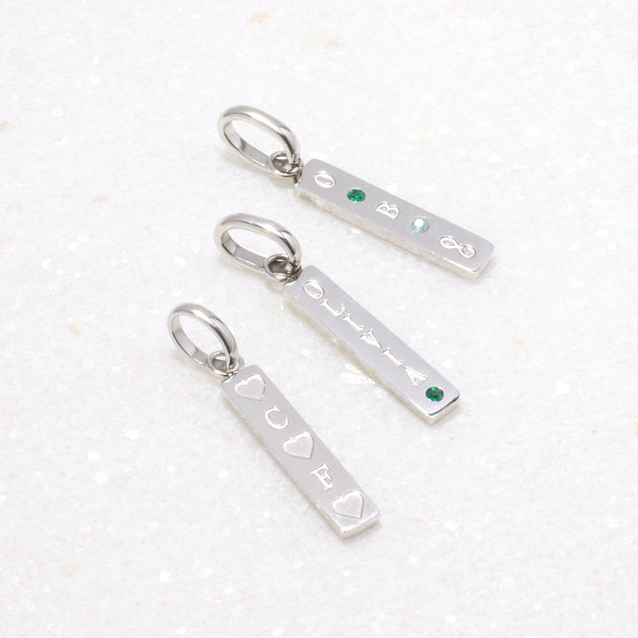 This Custom Stamped Bar Pendant Necklace is part of Abbott Lyon's new STAMPED Collection, designed to be all about you. It features a brand new debossed personalization technique, allowing you to choose from words, names, icons, and birthstones to create a bespoke piece that's truly unique. The pendant is also interchangeable, allowing for versatile styling.