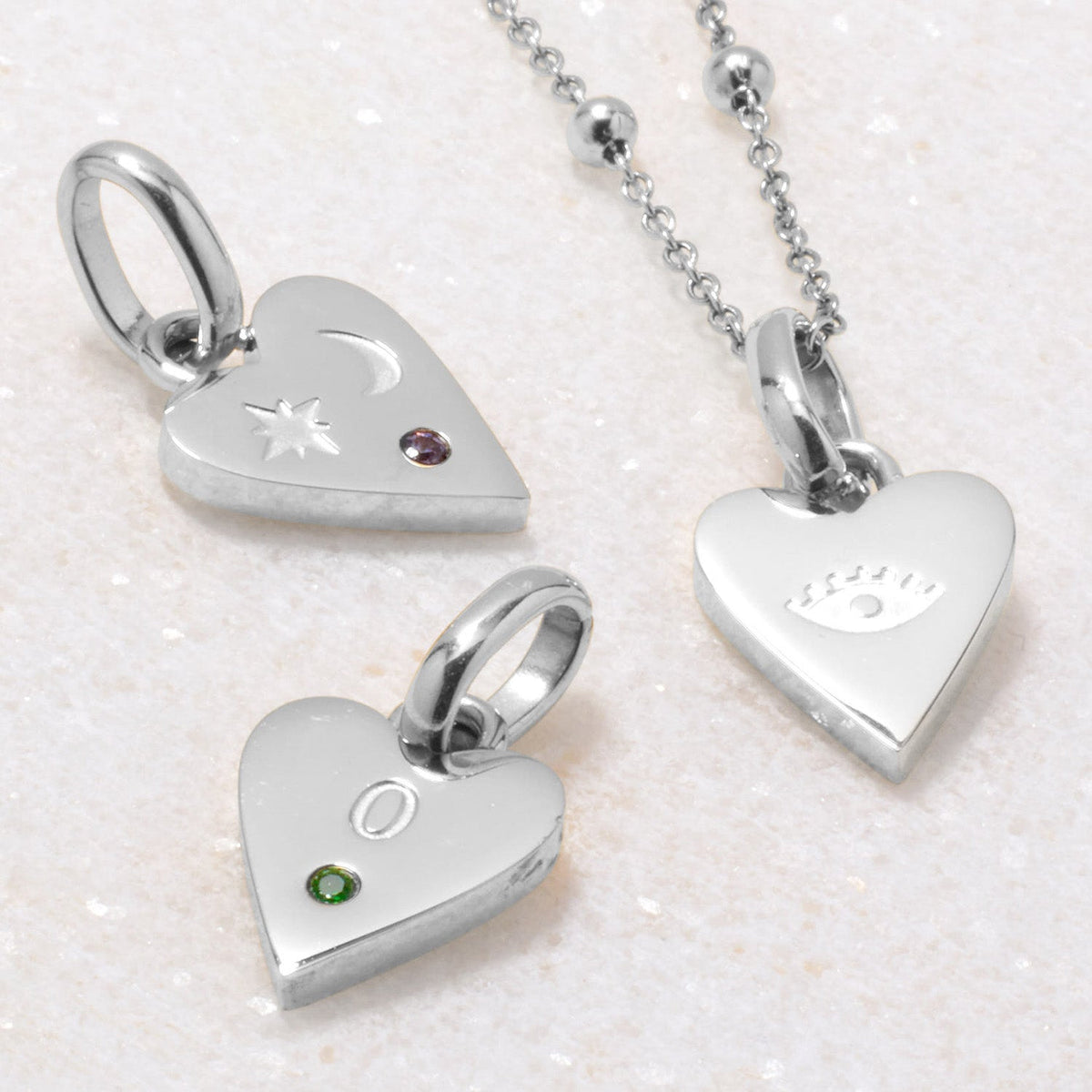This Custom Stamped Heart Pendant Necklace is part of Abbott Lyon's new STAMPED Collection, designed to be a personal and meaningful accessory. Using a new debossed technique, you can personalize the heart-shaped pendant with words, names, icons, or birthstones, making it a unique piece for yourself or a special gift for someone else.