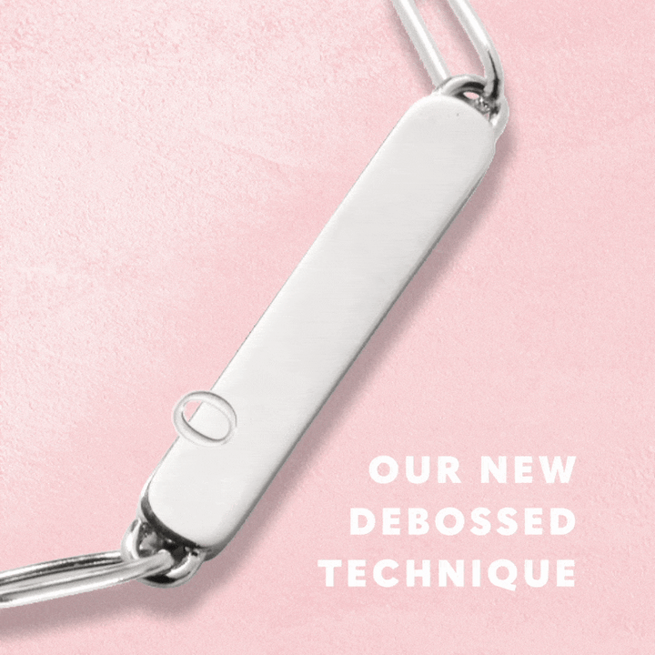 This Custom Stamped Name Bangle is part of Abbott Lyon's new STAMPED Collection, designed to be a personal and meaningful accessory. Using a new debossed technique, you can personalize this chic bangle with a custom name or word and a stamped icon of your choice. This bold and iconic piece is a great way to express your personal style.