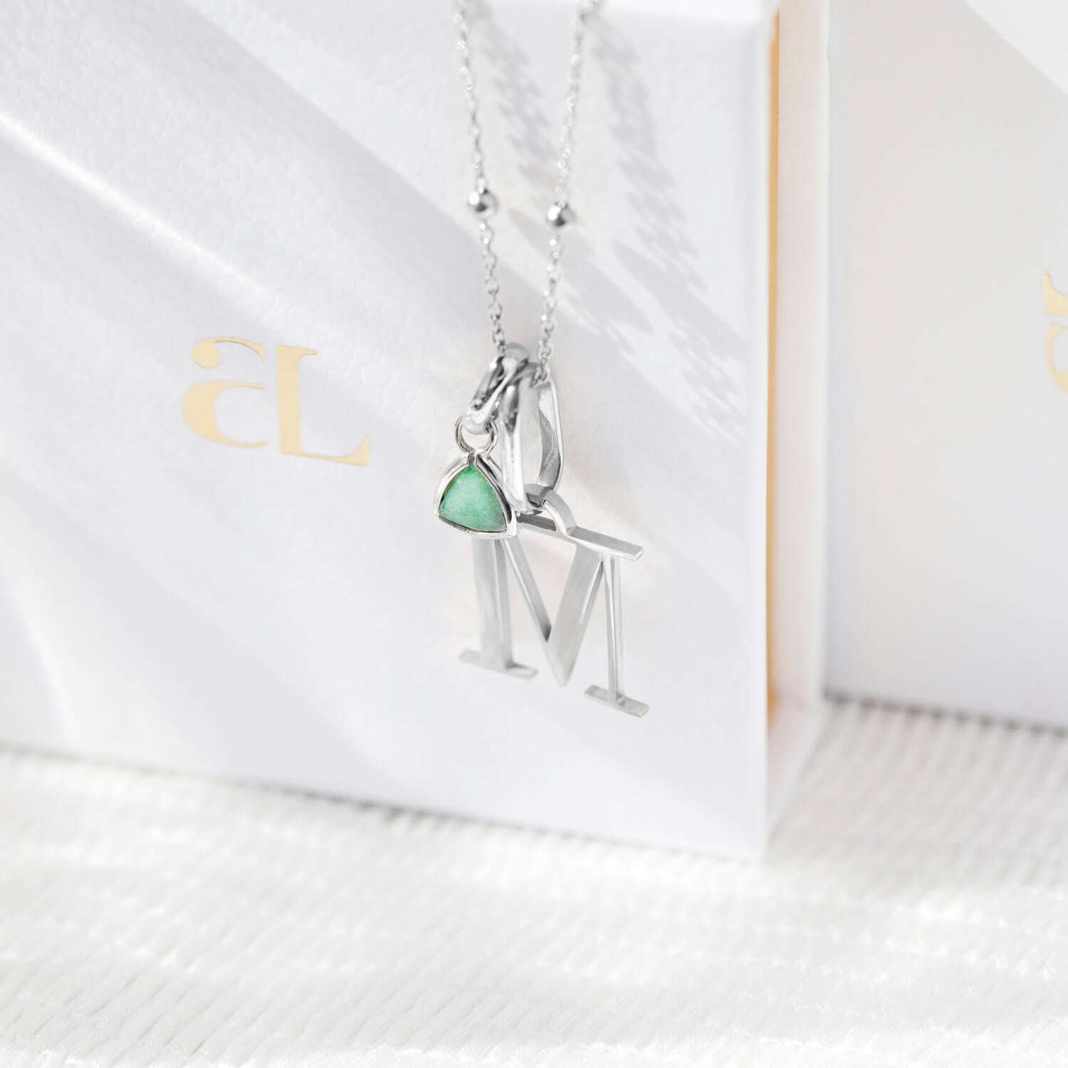 This pendant is crafted from silver-plated stainless steel and a genuine quartz stone. It features an innovative anti-tarnish protective coating, is water, sweat, and heat-resistant, and is made from over 60% recycled materials. The charm measures 6 x 8mm, and each natural stone is unique, so slight variations in color may occur.