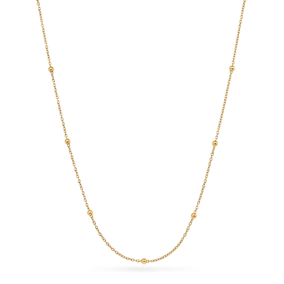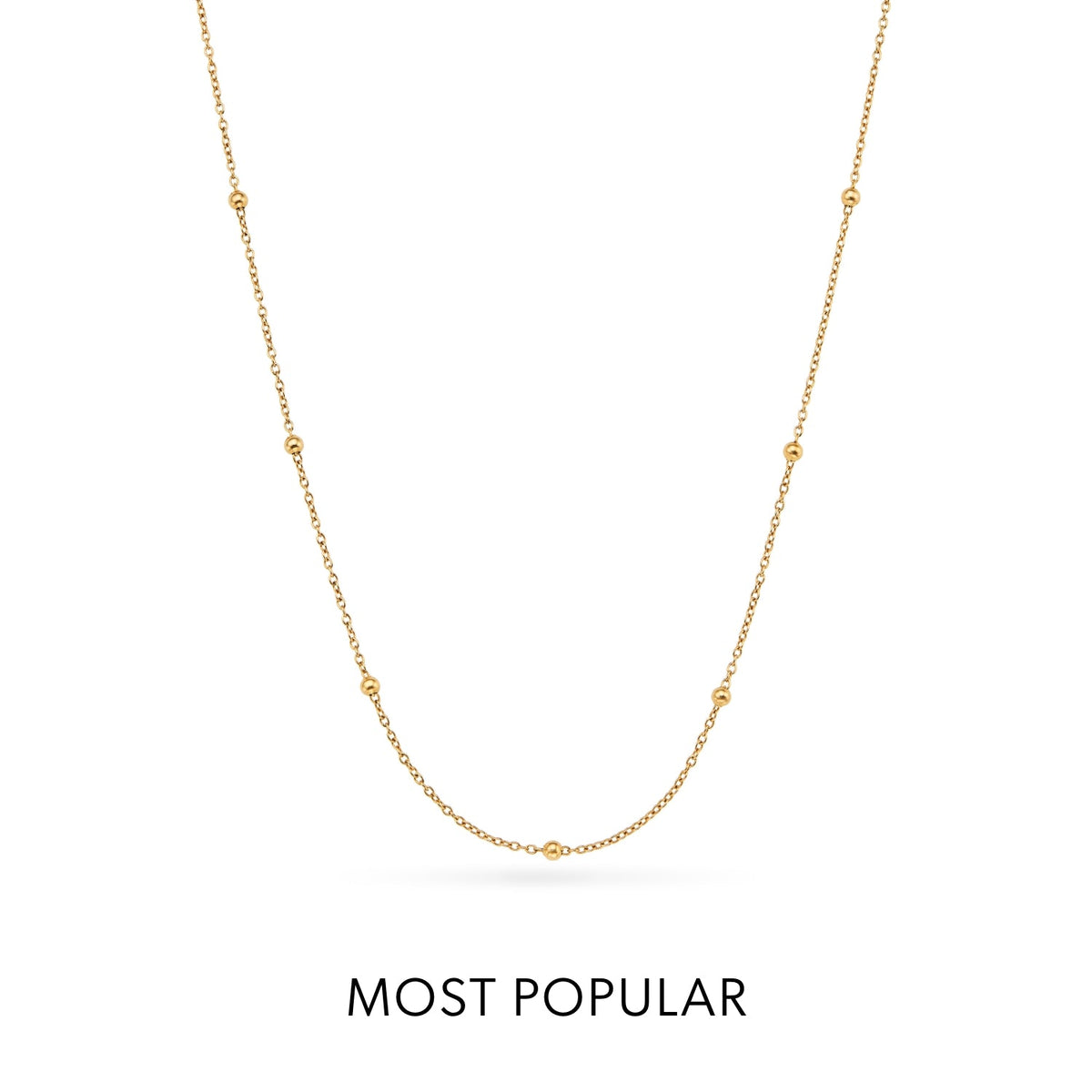 This necklace is crafted from 18k gold-plated brass with a 16mm pendant. It features an innovative anti-tarnish protective coating, is water, sweat, and heat-resistant, and is made from over 60% recycled materials.