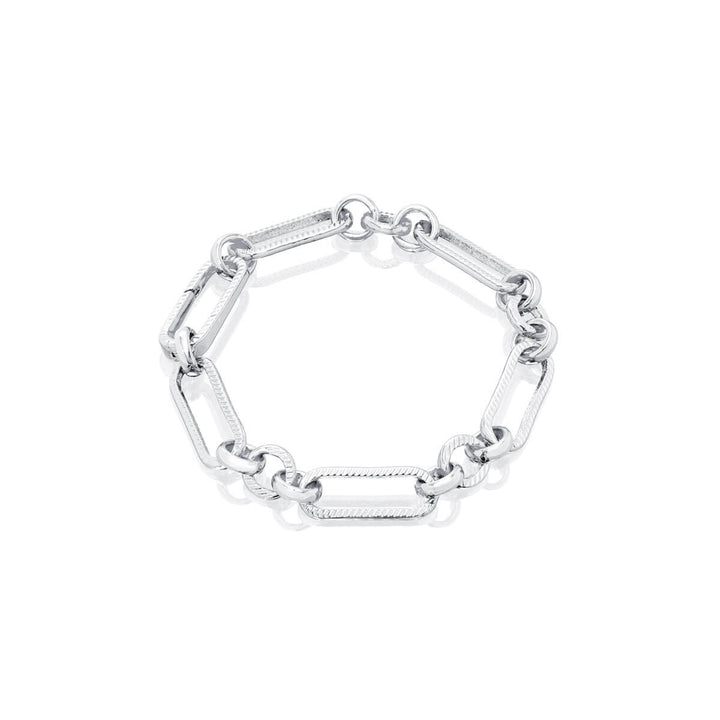 The Figaro Chain Bracelet by Abbott Lyon features a chunky, yet classic, Figaro chain design that makes a bold statement on its own or a perfect base for a layered look. The seamless clasp allows you to easily add your favorite charms and pendants for a truly bespoke piece. This bracelet is an ideal accessory for adding a touch of edgy elegance to any outfit.