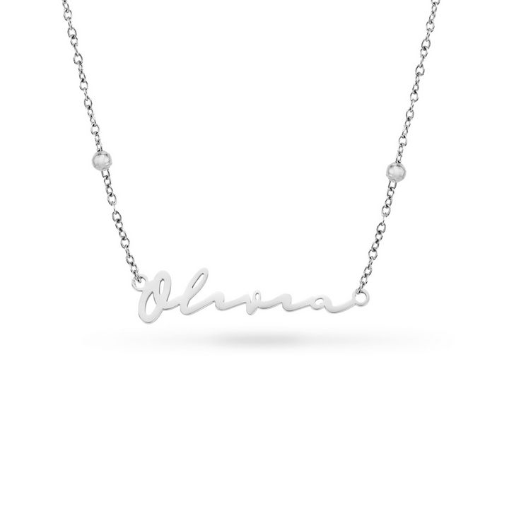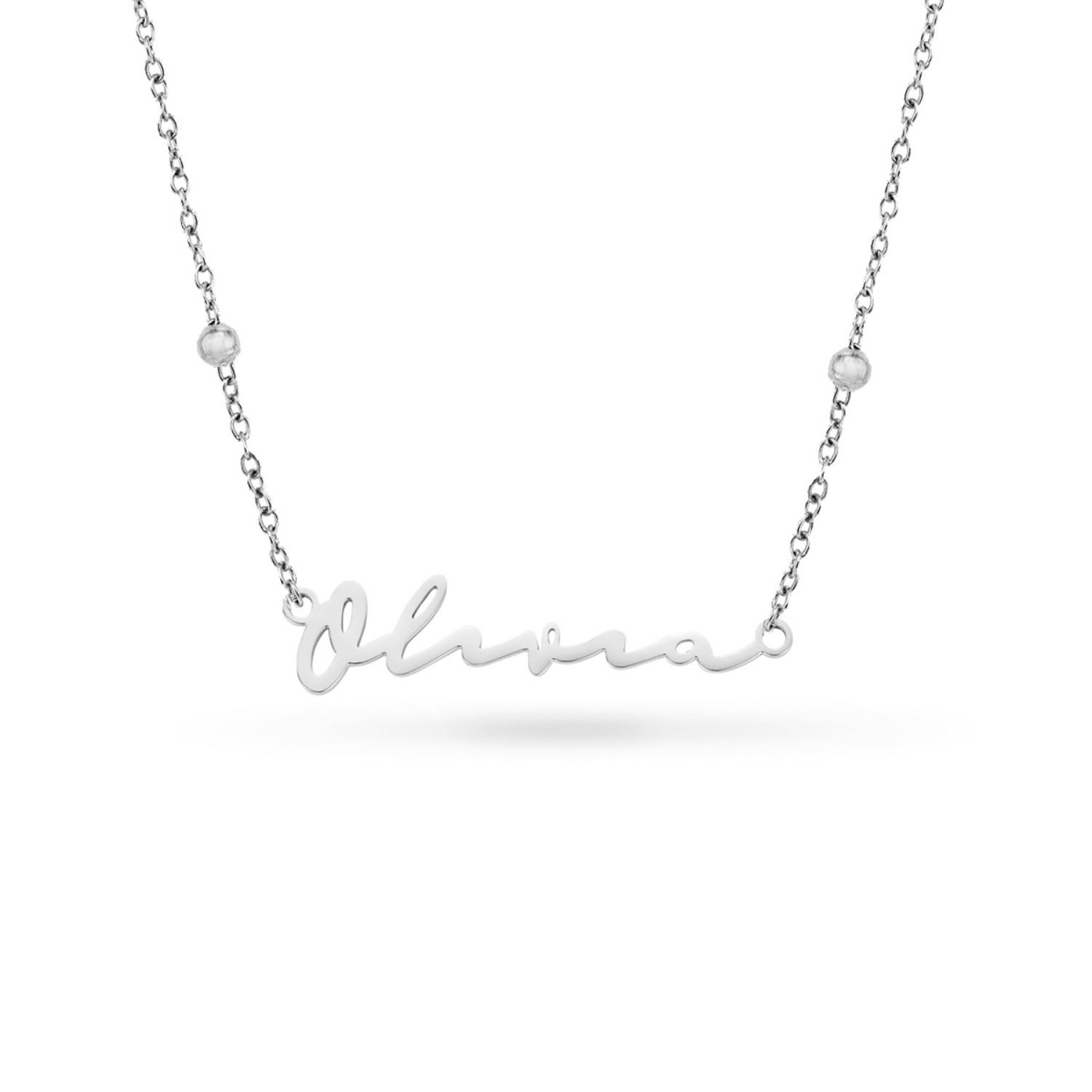 The Fine Signature Name Necklace by Abbott Lyon is an iconic and personal piece that allows you to express your signature style. Crafted from rhodium-plated sterling silver, this timeless necklace can be customized with a name or word up to 12 characters. It's built to last and makes for a perfect bespoke gift to celebrate yourself or someone special.