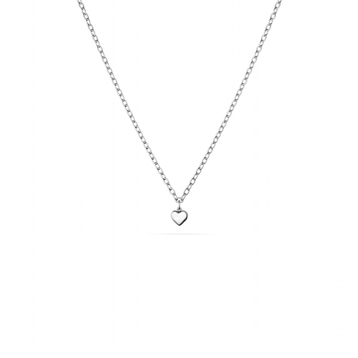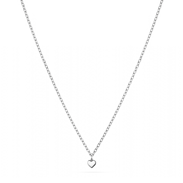 This necklace is crafted from rhodium-plated sterling silver with charms ranging from 4-6.5mm. It is water, sweat, and heat-resistant, and is made from over 90% recycled materials. It is available in three chain lengths: 14-16 inches, 16-18 inches, and 18-20 inches. It comes with a five-year quality and plating guarantee.