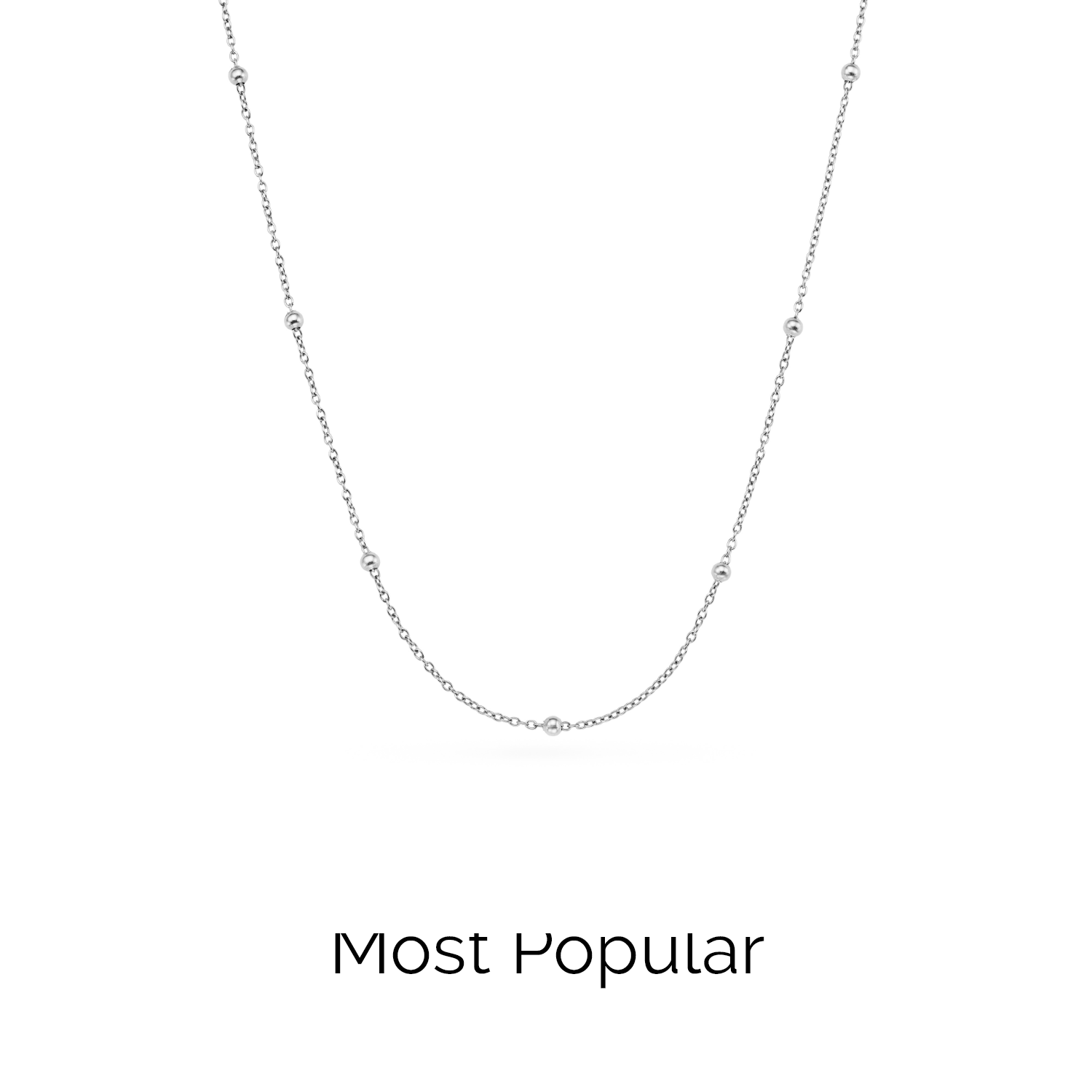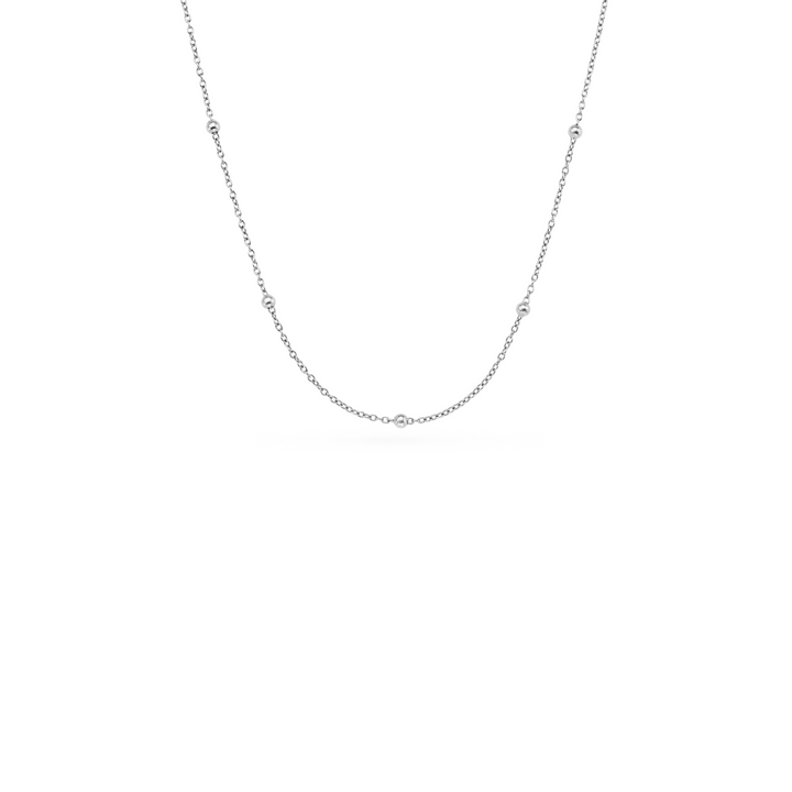 The Fine Sphere Chain Necklace by Abbott Lyon is an elegant and dainty accessory perfect for everyday wear. Crafted from certified 925 sterling silver, its lightweight design is made to last. This staple piece is perfect for wearing on its own or layering with other fine necklaces for an elevated look.