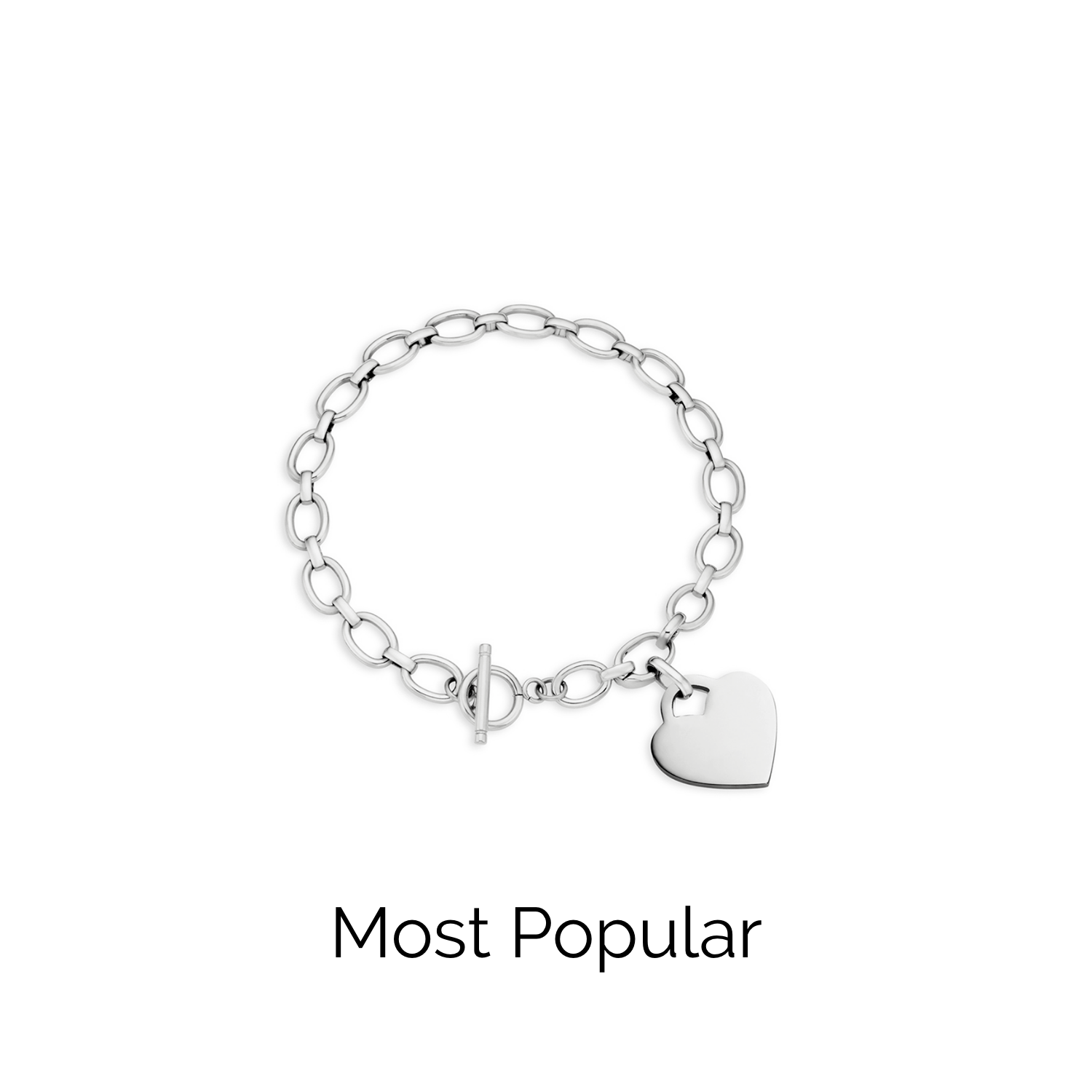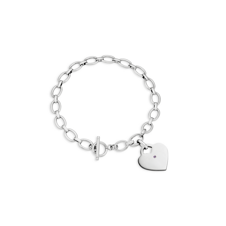 The Heart Token Oval Bracelet (Silver) is a timeless piece with oversized oval-shaped links and an engravable pendant. This bracelet offers a touch of vintage-inspired elegance and can be personalized with an engraving and the birthstone of your choice. You can also pair it with the matching Oval Chain Link Necklace to create a coordinated look.