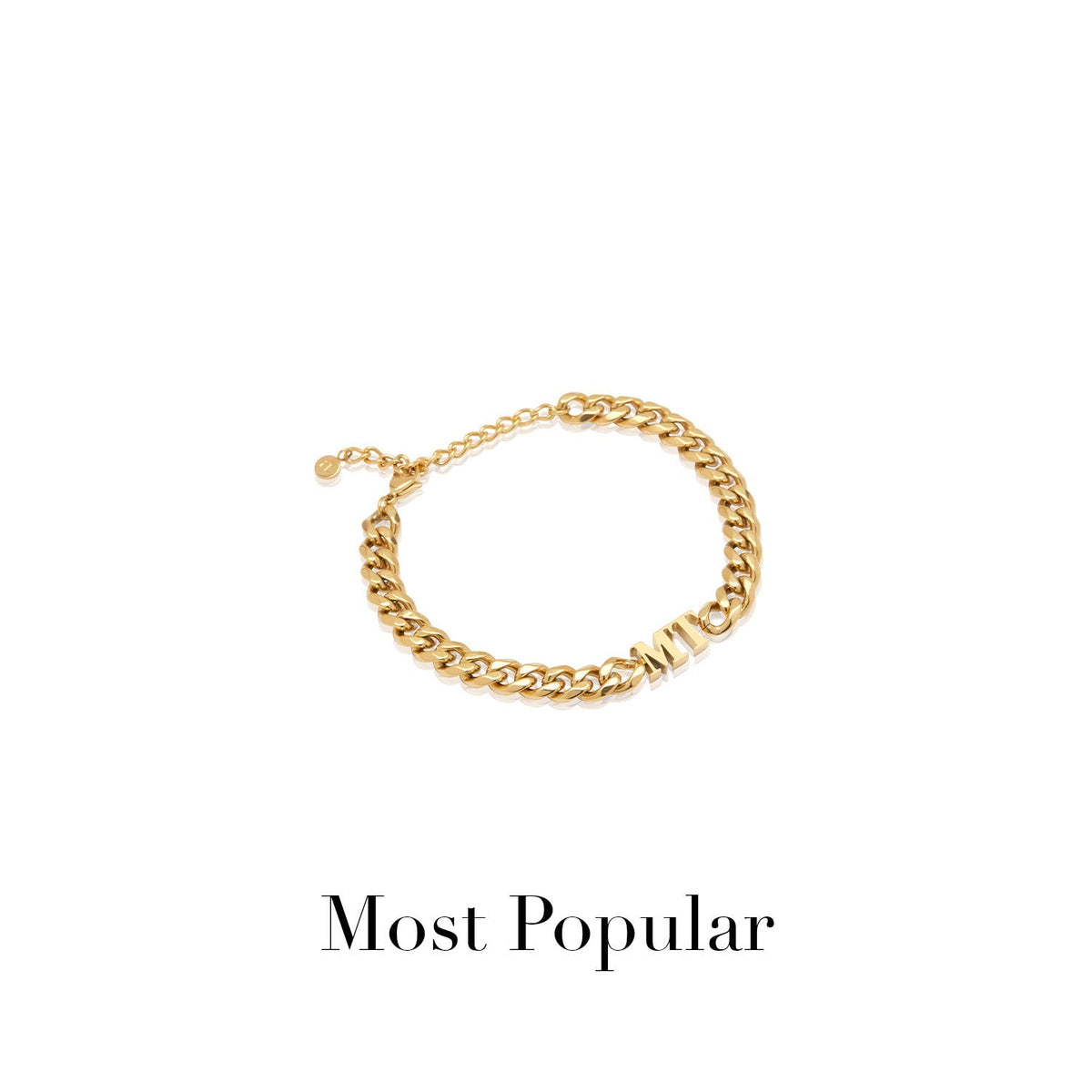 The Initial Curb Bracelet (Gold) is a handmade-to-order piece that features a statement curb chain with personalized initials of your choice. This stunning, bespoke bracelet is a perfect accessory for yourself or someone special.
