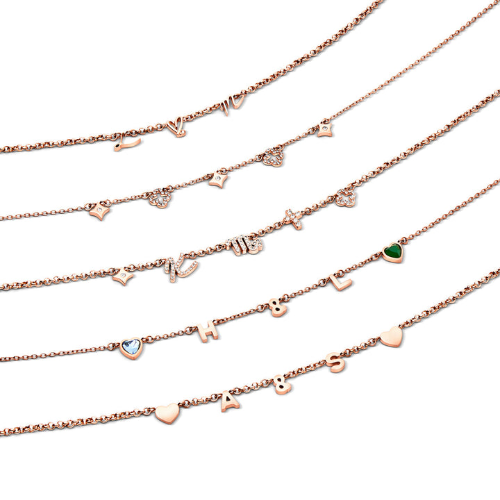 Handcrafted in 18k rose gold-plated stainless steel, available in three chain lengths: 14-16in, 16-18in, and 18-20in.