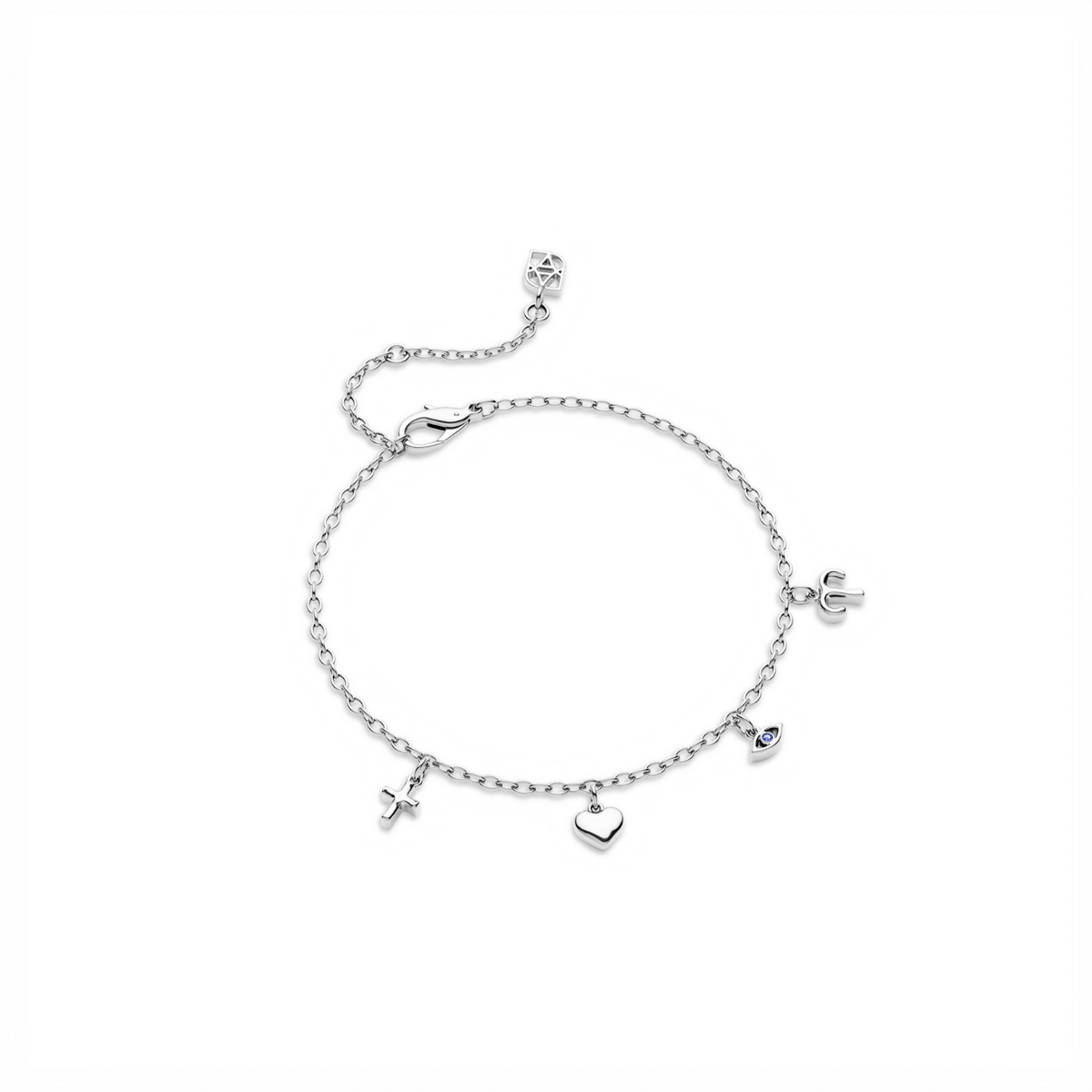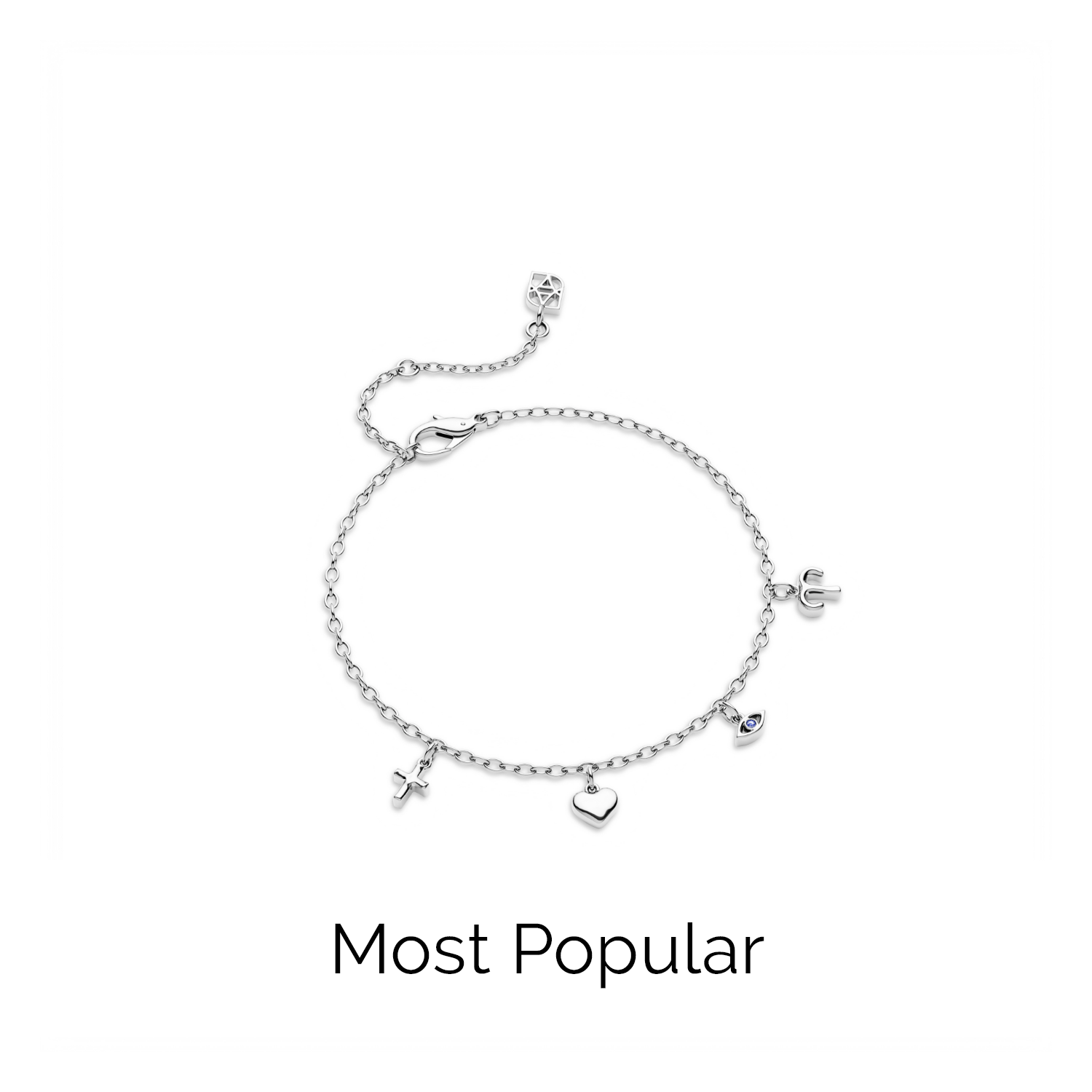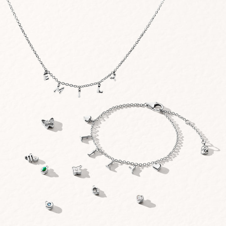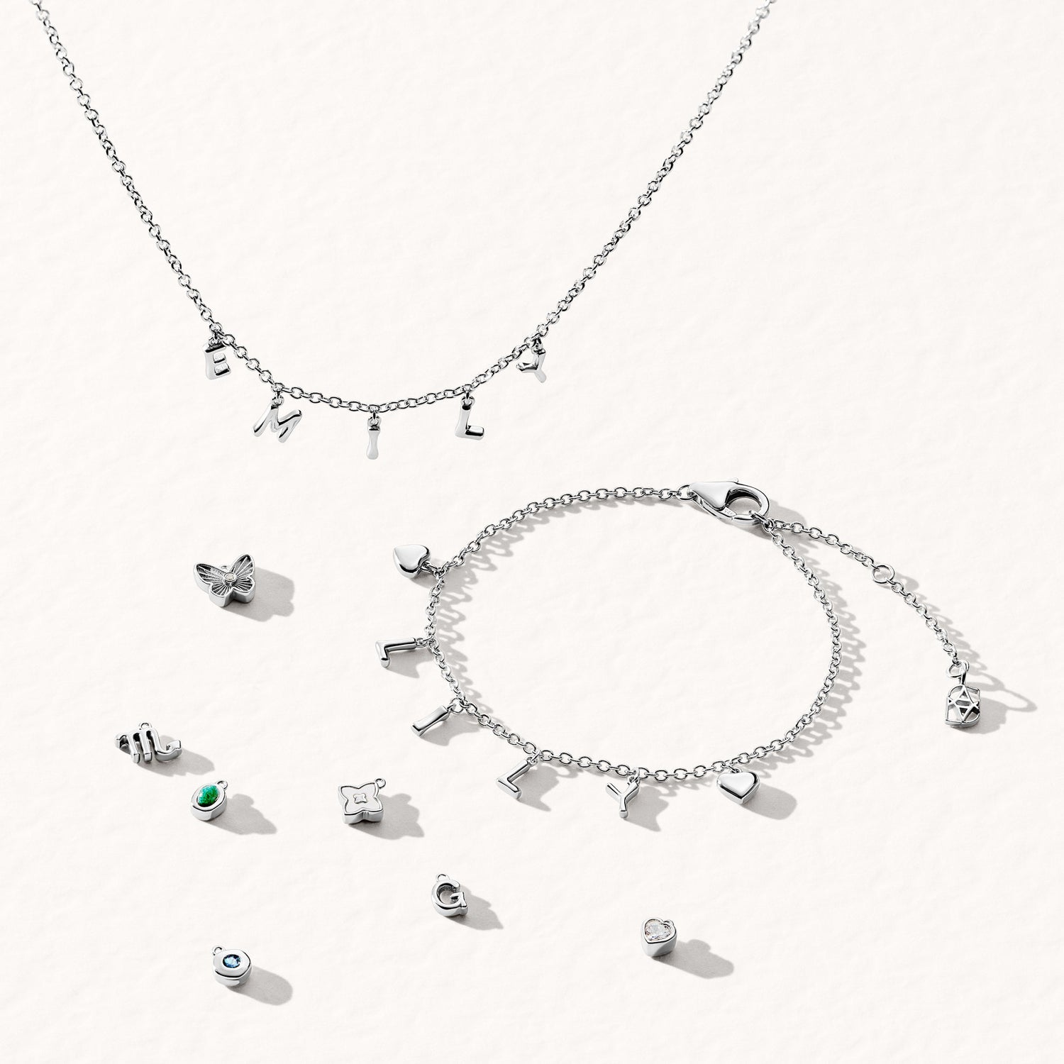 Handcrafted in rhodium-plated certified 925 sterling silver with a 1-micron plating. Features 4mm-6.5mm charms and is available in two chain lengths: S/M (6-7.5in) and M/L (7.5-9in).