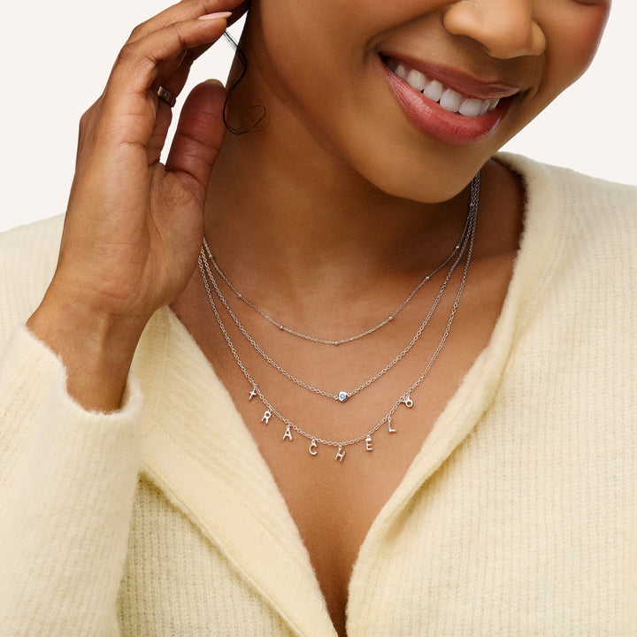 Handcrafted in rhodium-plated certified 925 sterling silver with a 1-micron plating. Features 4-6.5mm charms and is available in three chain lengths: 14-16in, 16-18in, and 18-20in.