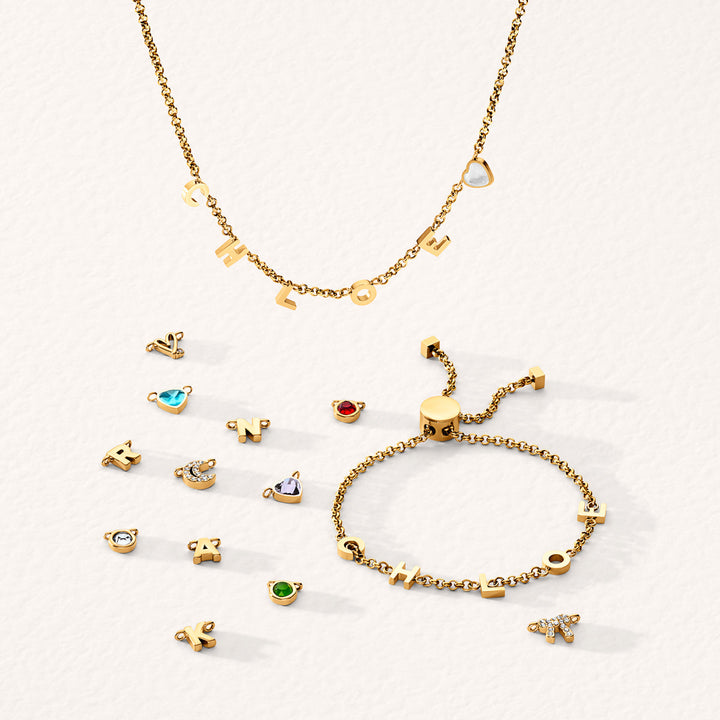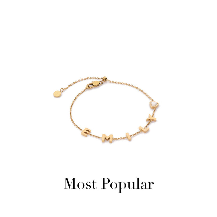 This Made Mine Name Bracelet by Abbott Lyon is a timeless and truly personal piece, offering a fresh update on a best-selling design. This custom bracelet features individual letters to spell out a name or word of your choice, allowing you to create a bespoke piece that celebrates your individuality or a person you love. It is the ultimate way to show them you know them, with the option to add extra charms for a truly unique look.