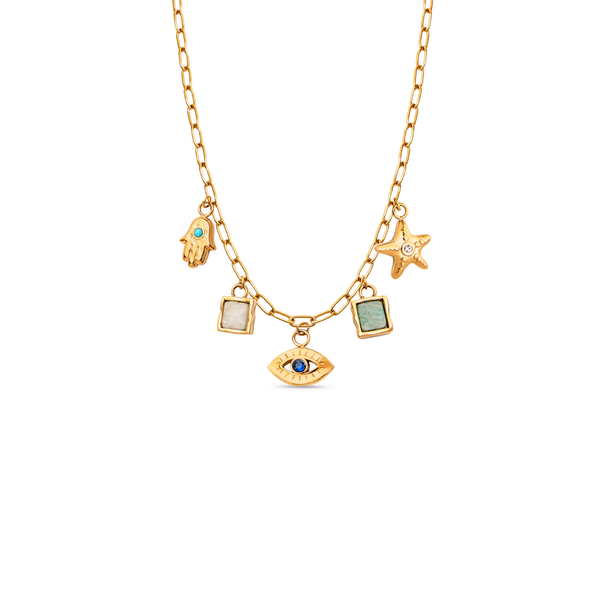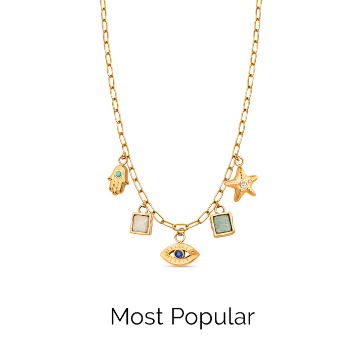 This Made Mine Ocean Charm Necklace by Abbott Lyon is a perfect piece to carry a little bit of paradise with you. Each charm is custom-made with a unique molten texture, making every piece one of a kind. The collection is filled with meaningful, designer-inspired charms, including suns, starfish, shells, and even protective evil eyes, allowing you to build a necklace that tells your unique story. The paperclip chain is perfect for layering, and the tarnish- and waterproof plating ensures it’s ready for any adventure.