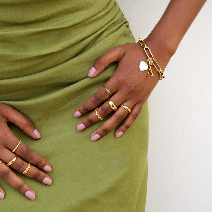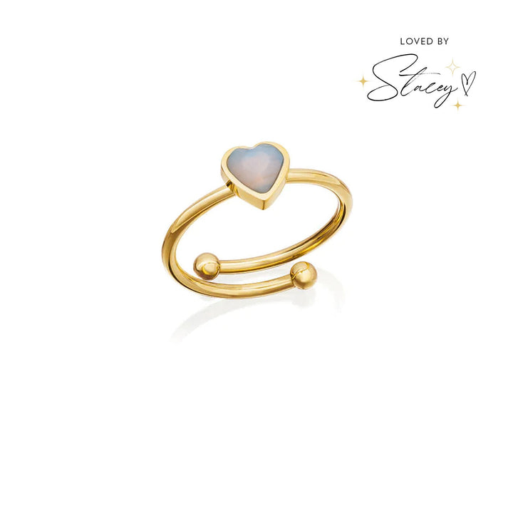 Handcrafted in 18k gold-plated brass, with a fully adjustable fit and a 6x6mm heart-shaped stone. Each stone is natural and may vary slightly in color.
