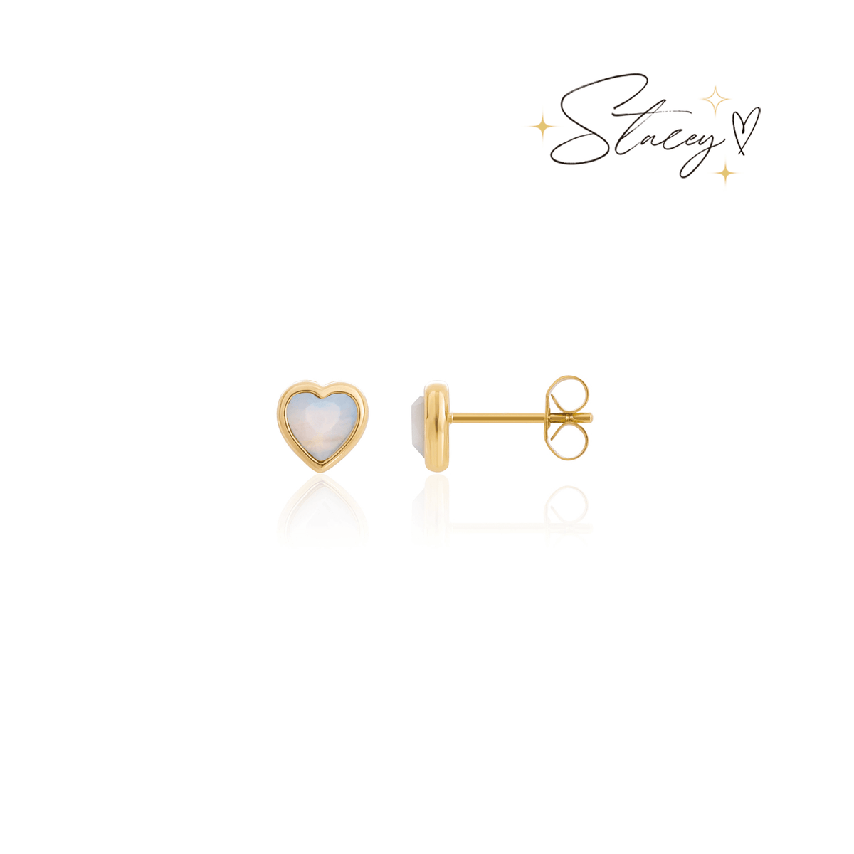 Handcrafted in 18k gold-plated stainless steel with 5.5x5.5mm gemstone hearts. Each stone is natural and may vary slightly in color.