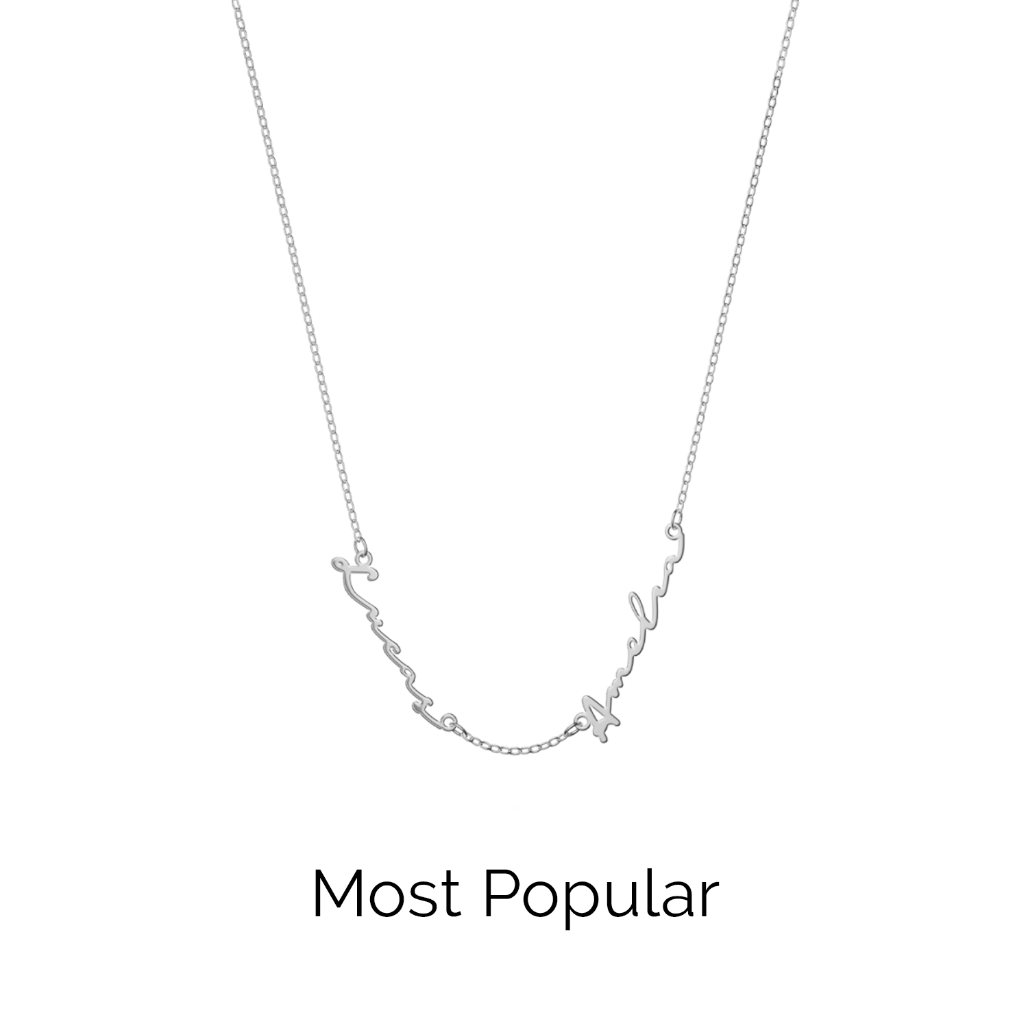 Handcrafted in polished stainless steel. It can accommodate 2-6 names with a 9-character limit per name. It is available in two adjustable chain lengths: 16-18in and 18-20in.