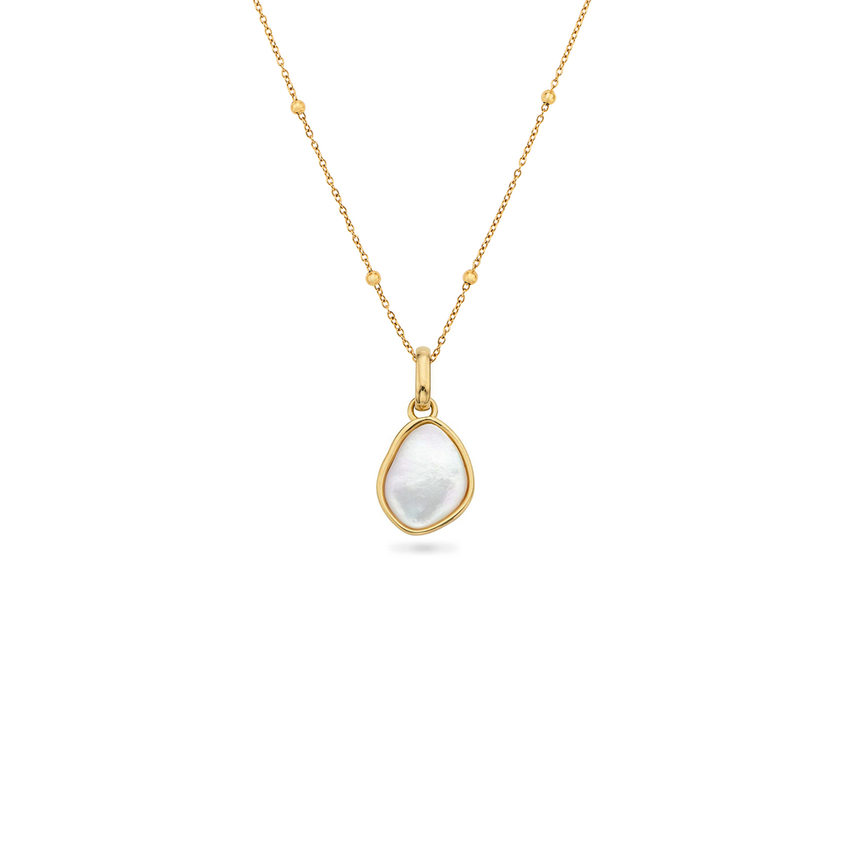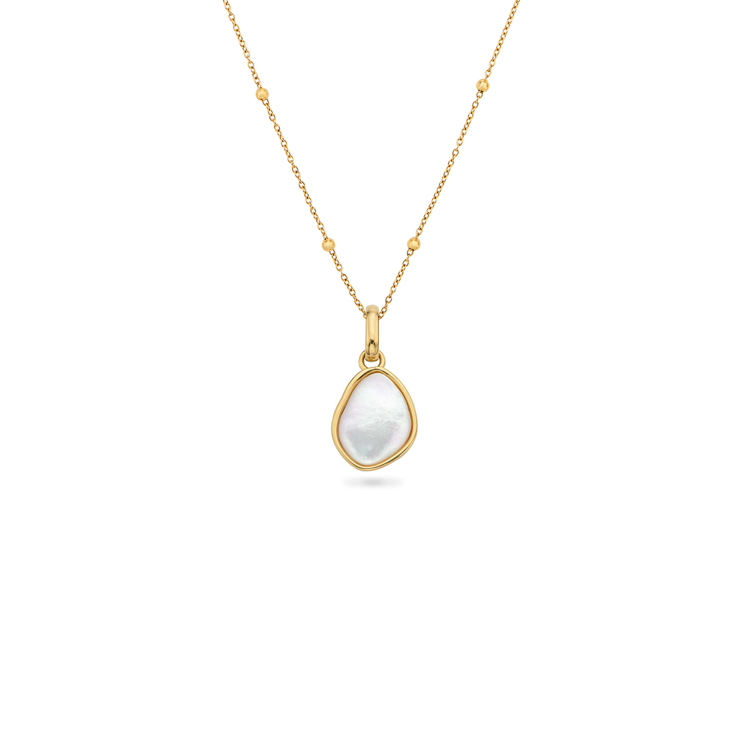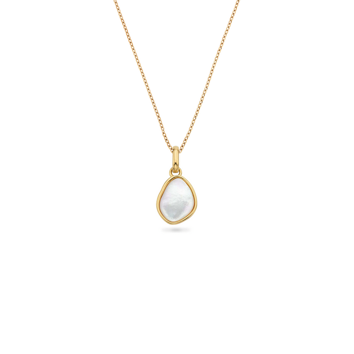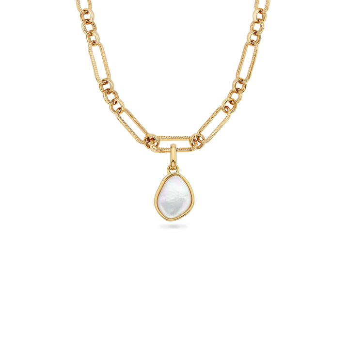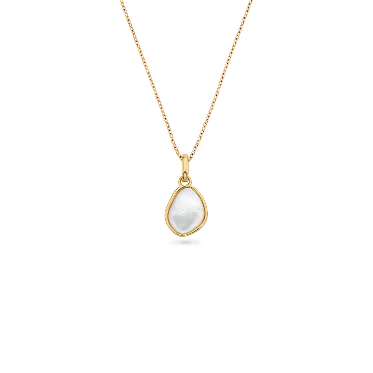 Handcrafted in 18k gold-plated stainless steel. The interchangeable pendant measures 13x9mm and is available in two lengths: 14-16in and 18-20in.