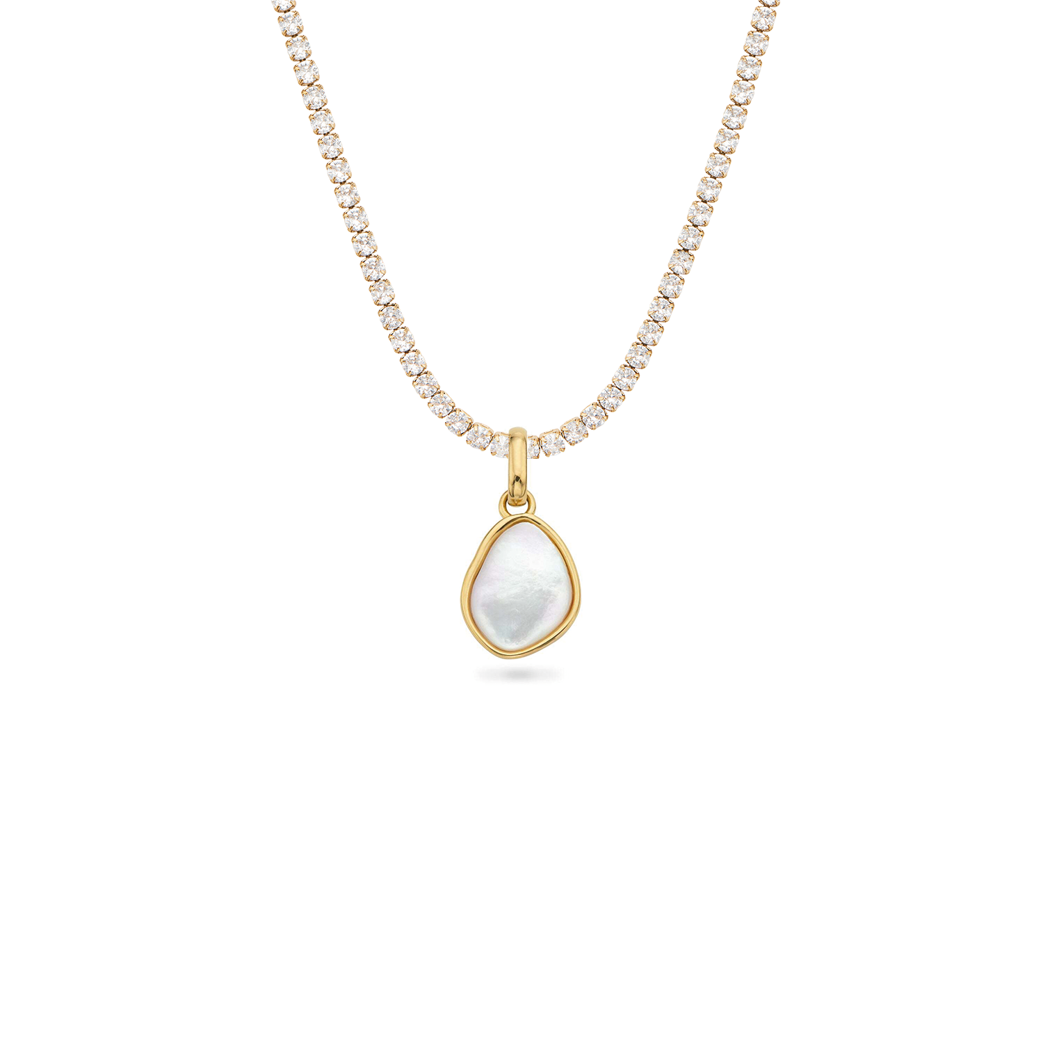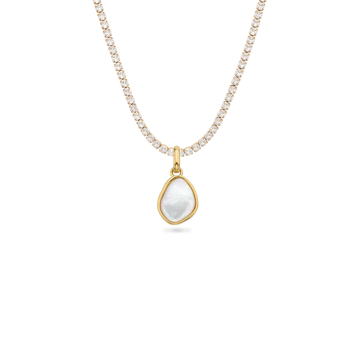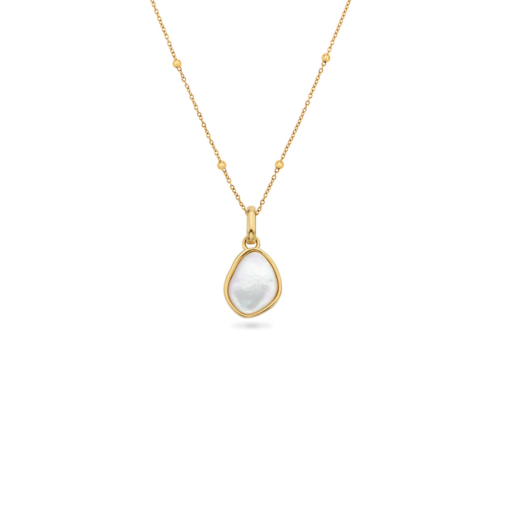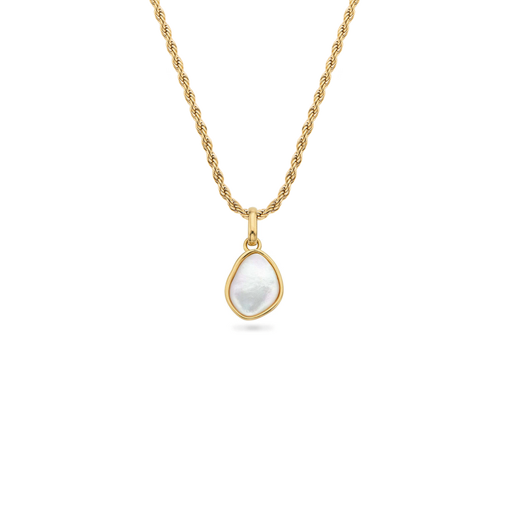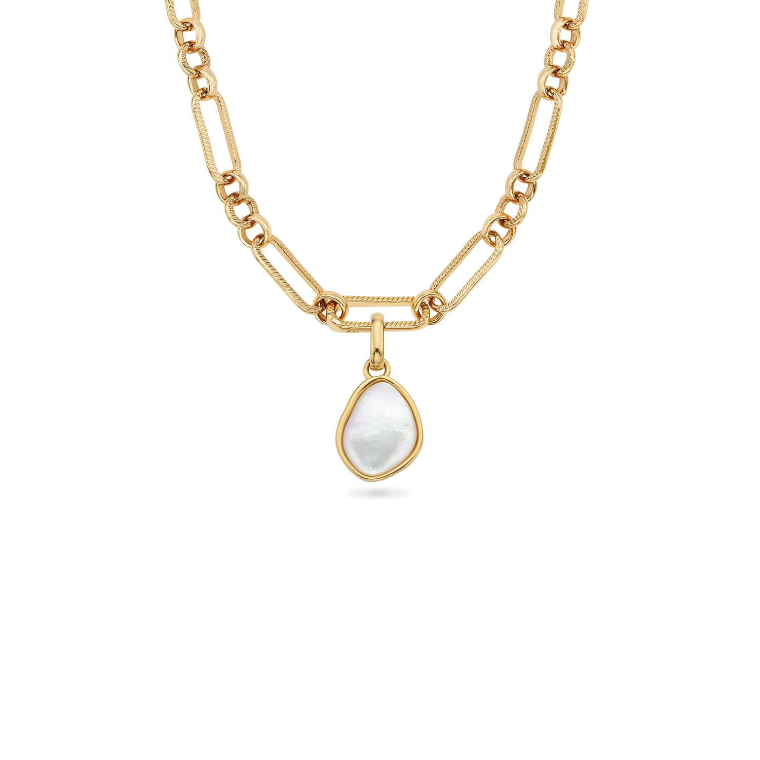 Handcrafted in 18k gold-plated stainless steel. The interchangeable pendant measures 13x9mm and is available in two lengths: 14-16in and 18-20in.