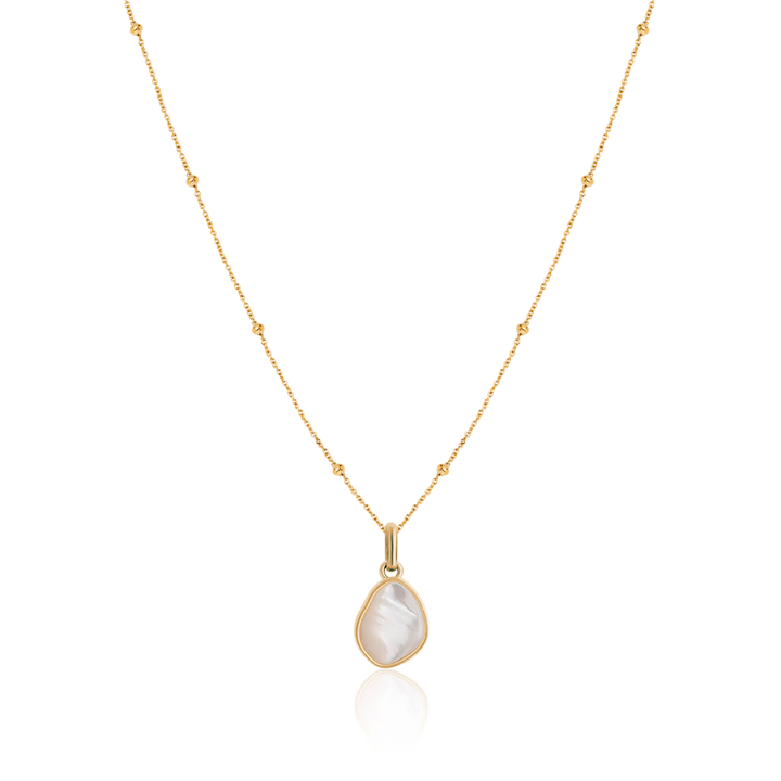 This Organic Moonstone Necklace by Abbott Lyon features a stylish, organic design and a beautiful moonstone effect. It can be set on one of five gold chains and worn on its own or layered with other pendants. You can also engrave the reverse with initials for a subtle, bespoke touch.