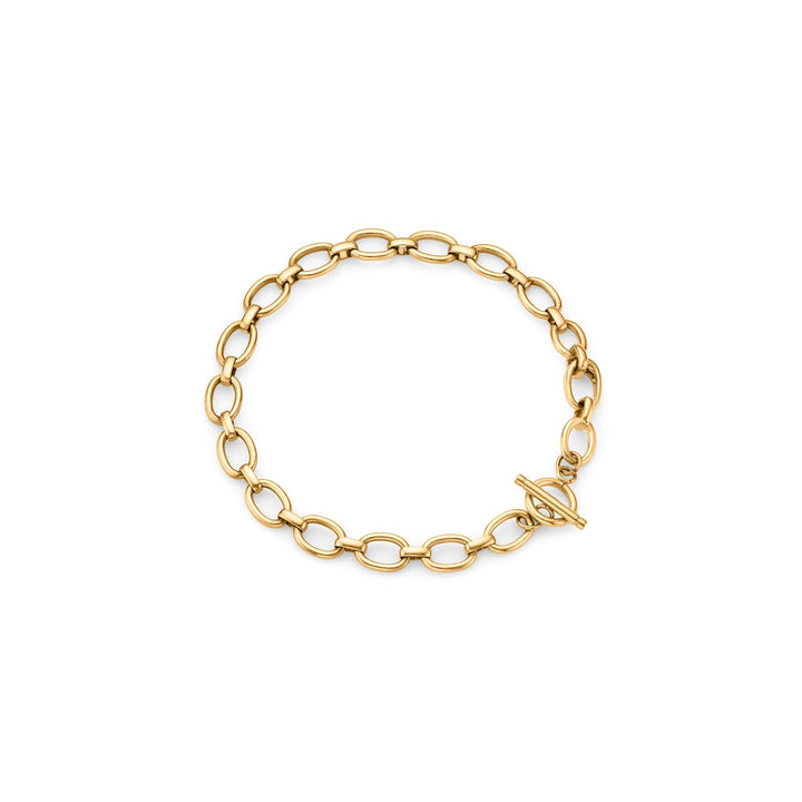 This Oval Link Chain Bracelet by Abbott Lyon is a simple yet statement-making piece thanks to its oversized, oval-shaped links. You can add this gold bracelet to your wrist stack for a vintage-inspired look or wear it on its own with the matching necklace for a coordinated style. It makes an extra special gift when a pendant is added.