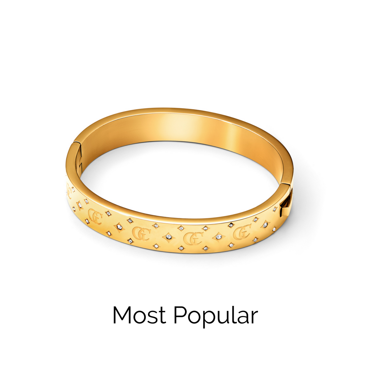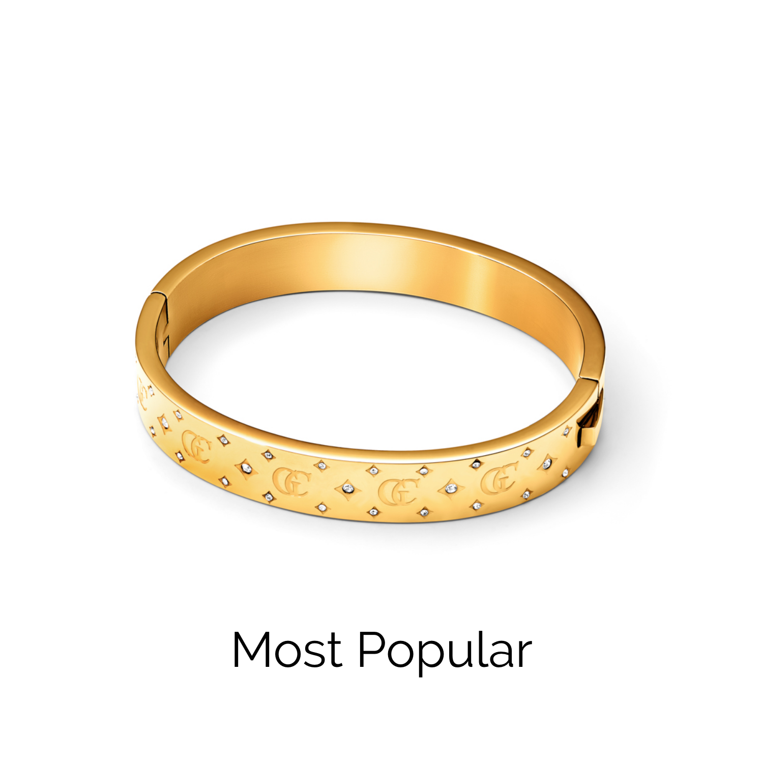 This Own Way Monogram Bangle by Abbott Lyon is a designer-inspired piece that you can make your own by choosing two letters for your initials. This 18k gold-plated bangle adds a touch of luxury to any outfit, with cubic zirconia gems providing a subtle shine. It's a perfect and thoughtful gift for a friend.