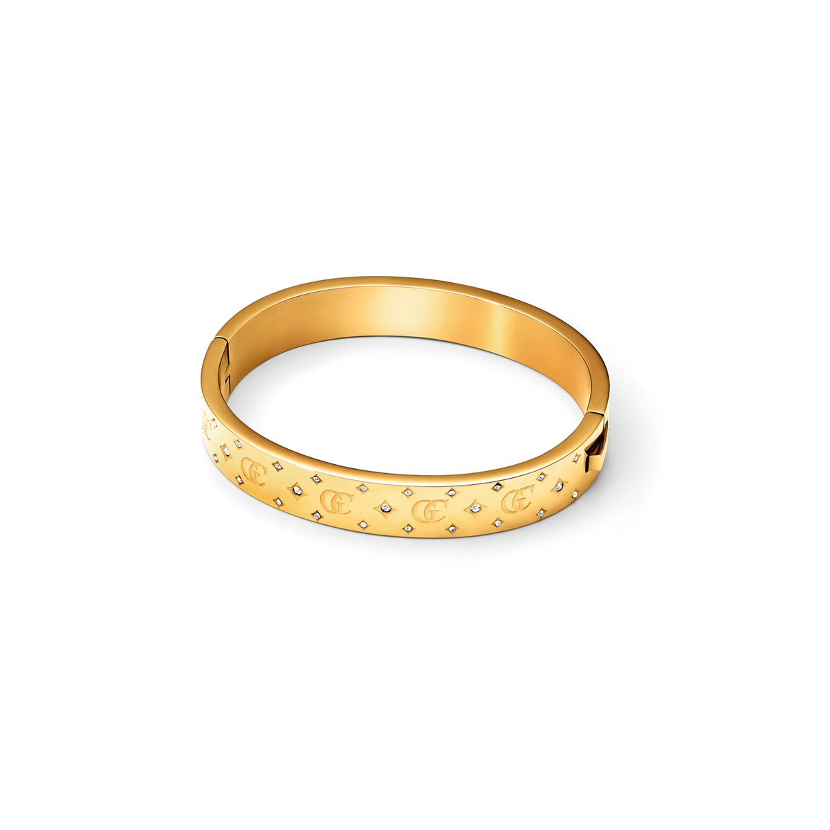 Handcrafted in 18k gold-plated stainless steel. It is available in two sizes: S/M (165mm) and M/L (180mm), with a 10mm width.