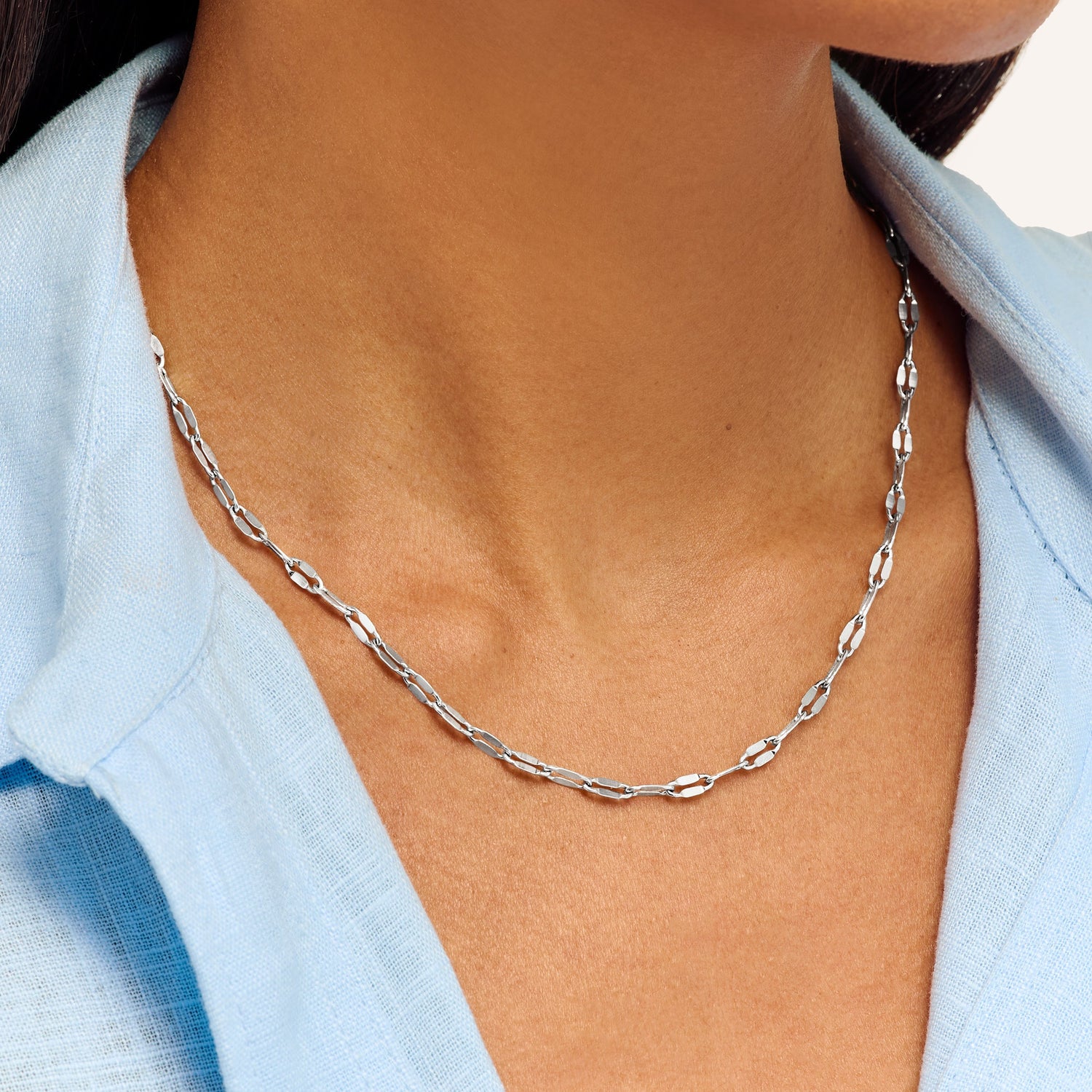 Paperclip Diamond Cut Chain Necklace (Silver)