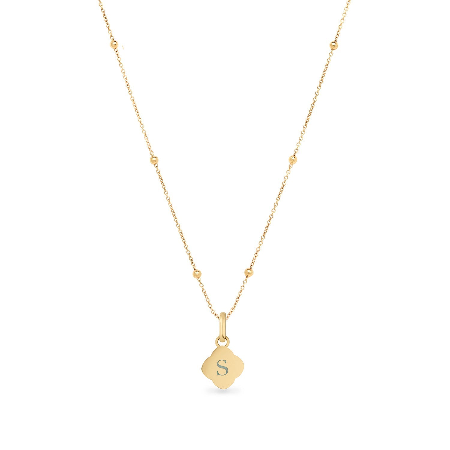 This Pearl Clover & Initial Necklace by Abbott Lyon is the perfect gift bundle for someone who loves the brand's designer-inspired clover shape. The set includes a Sphere Chain, a Pearl Clover Pendant, and a Lowercase Initial Pendant. The back of the clover can be engraved with an initial or icon of your choice.