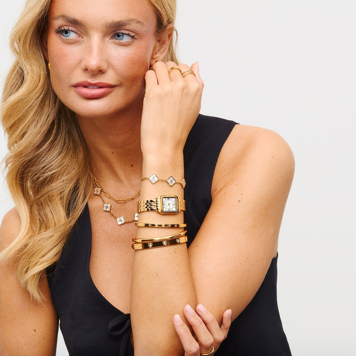 Pearl Clover Custom Name Bracelet (Gold)