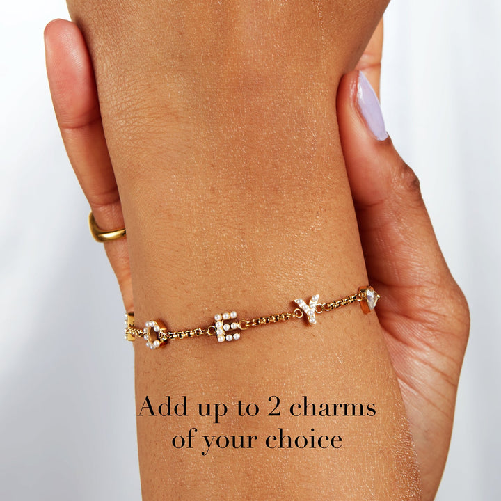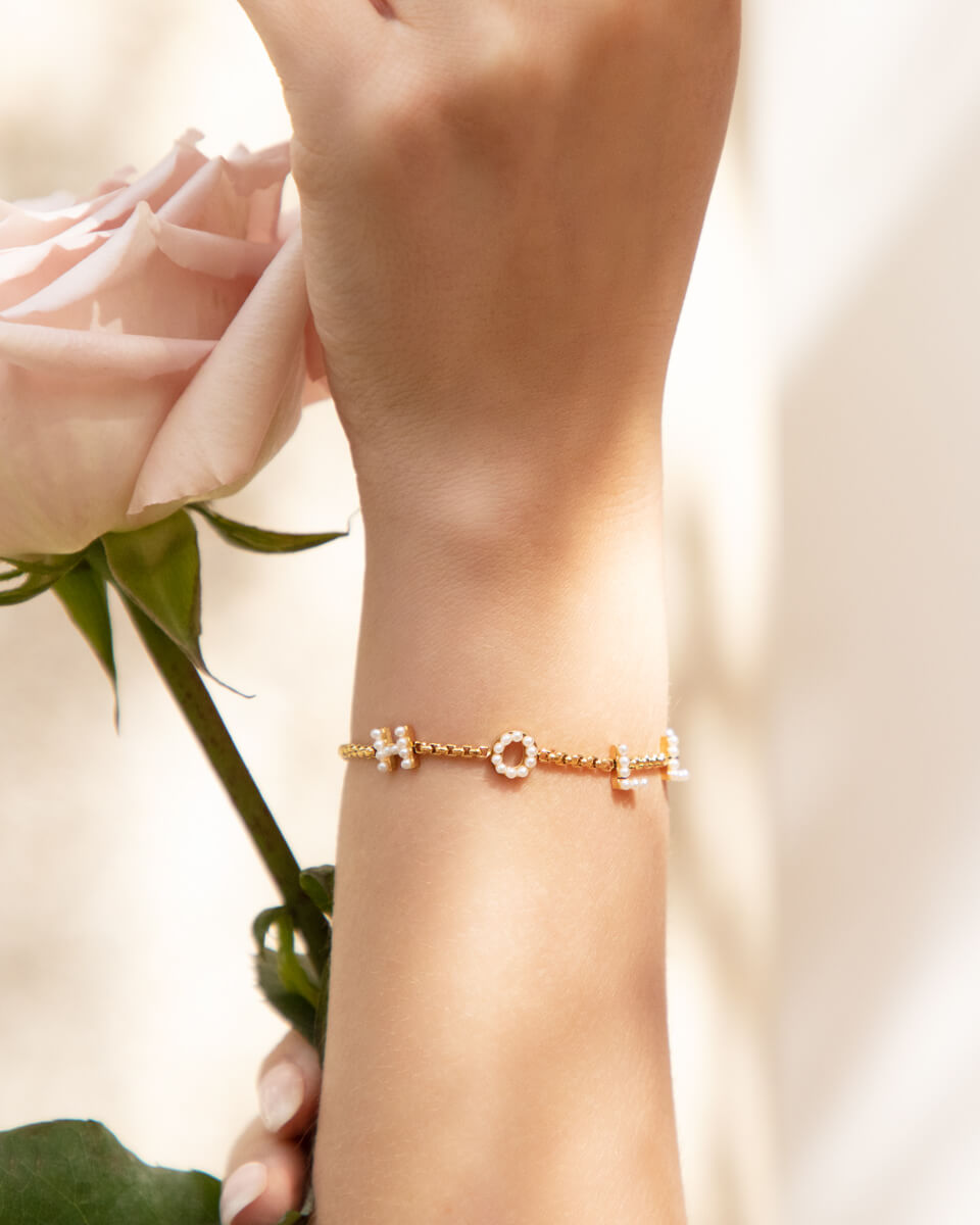 This Pearl Custom Name Bracelet by Abbott Lyon represents love and beauty. It's a dreamy update to the brand's custom name bracelet and is totally unique to you. You can create a luxurious, bespoke piece that celebrates you or someone special.