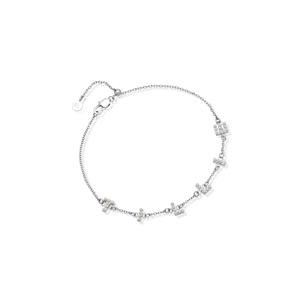 Handcrafted in polished stainless steel with vegan-friendly pearl. It is available in two adjustable chain lengths: S/M (up to 9in) and M/L (up to 9.8in).
