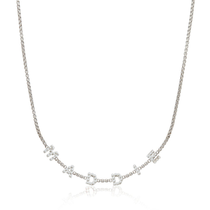 This Pearl Custom Name Necklace by Abbott Lyon represents love and beauty. It's a dreamy update to the brand's best-selling custom name necklace and is totally unique to you. You can create a luxurious, bespoke piece that celebrates you or someone special.