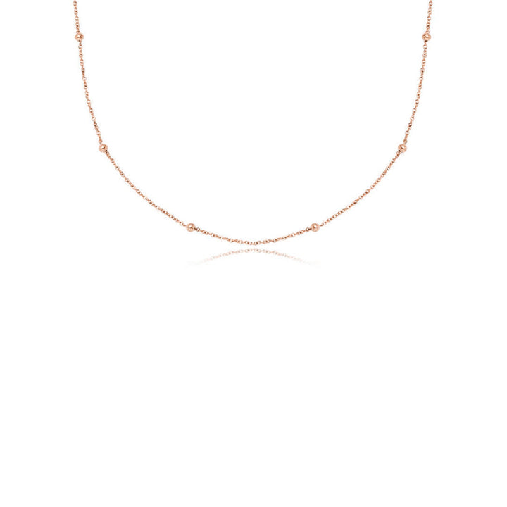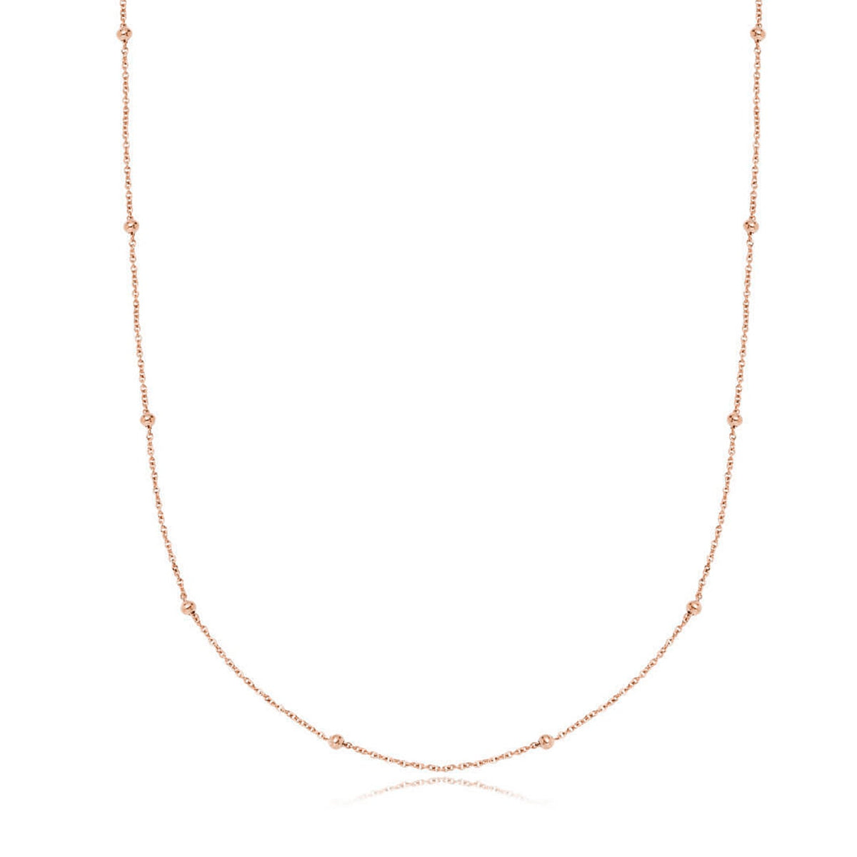 Handcrafted in 18k rose gold-plated stainless steel. It is available in three chain lengths: 14-16in, 18-20in, and 22-24in.