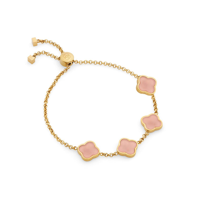Rose Quartz Clover Custom Name Bracelet (Gold)