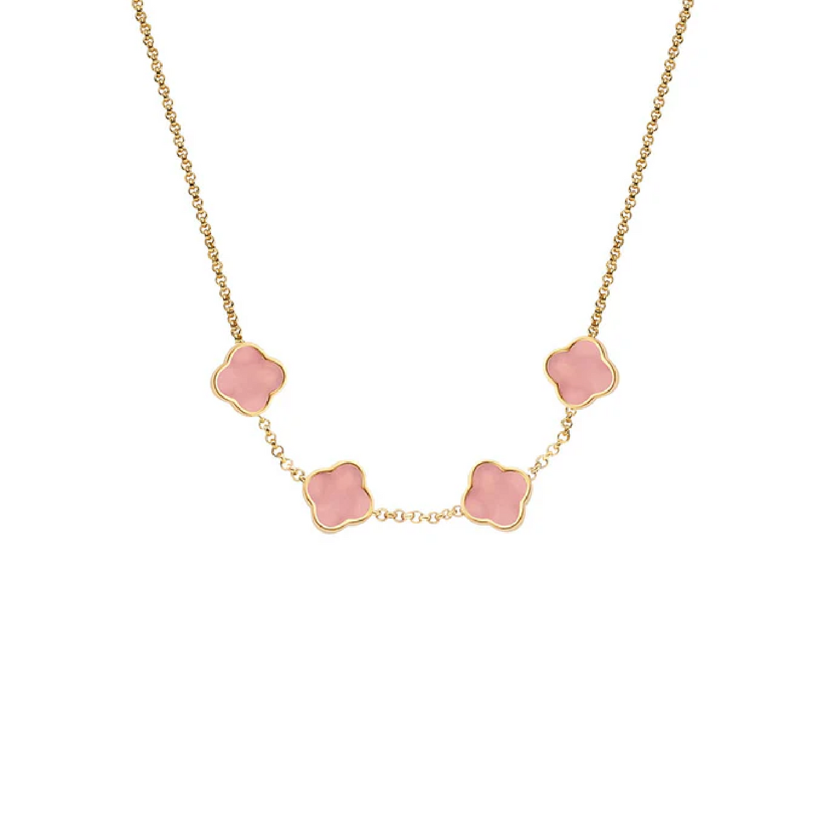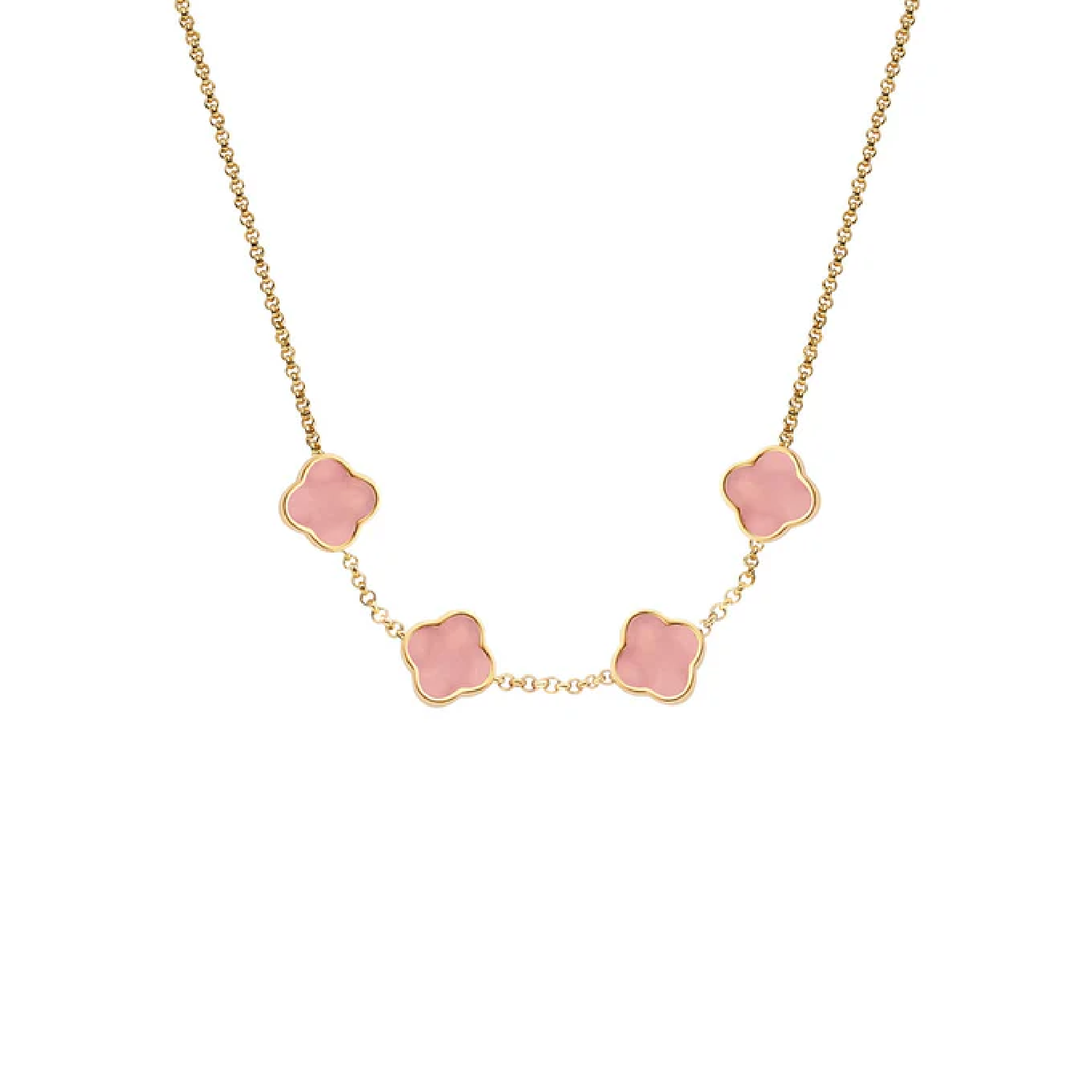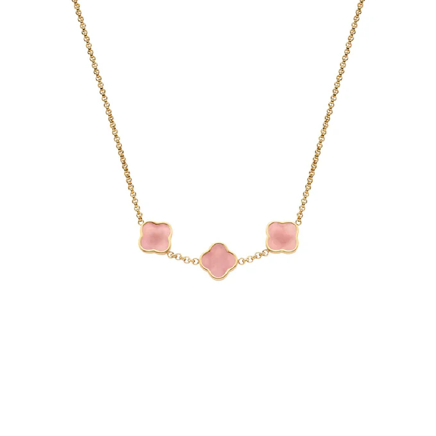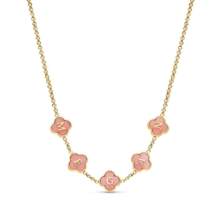 Rose Quartz Clover Custom Name Necklace (Gold)