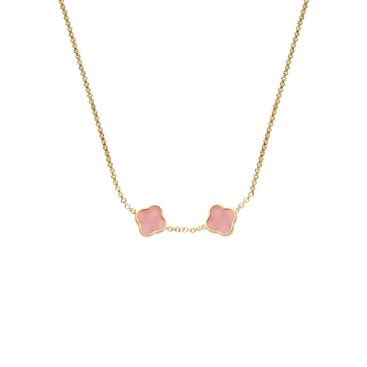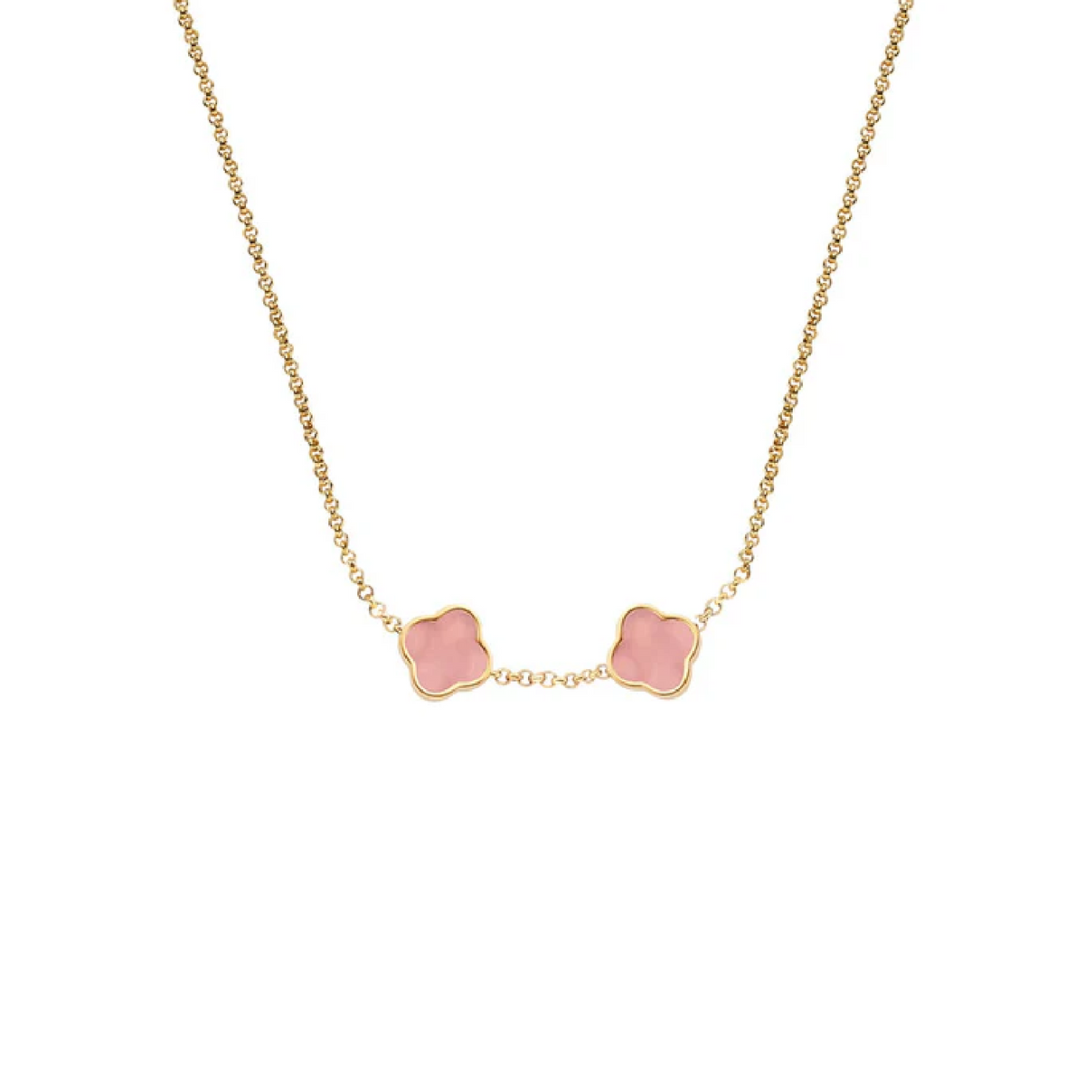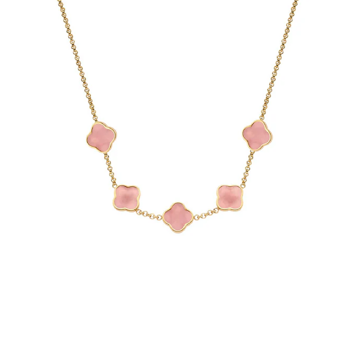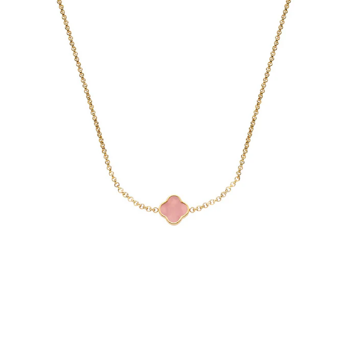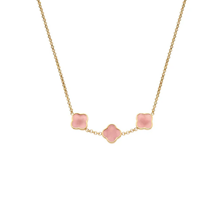 Rose Quartz Clover Custom Name Necklace (Gold)