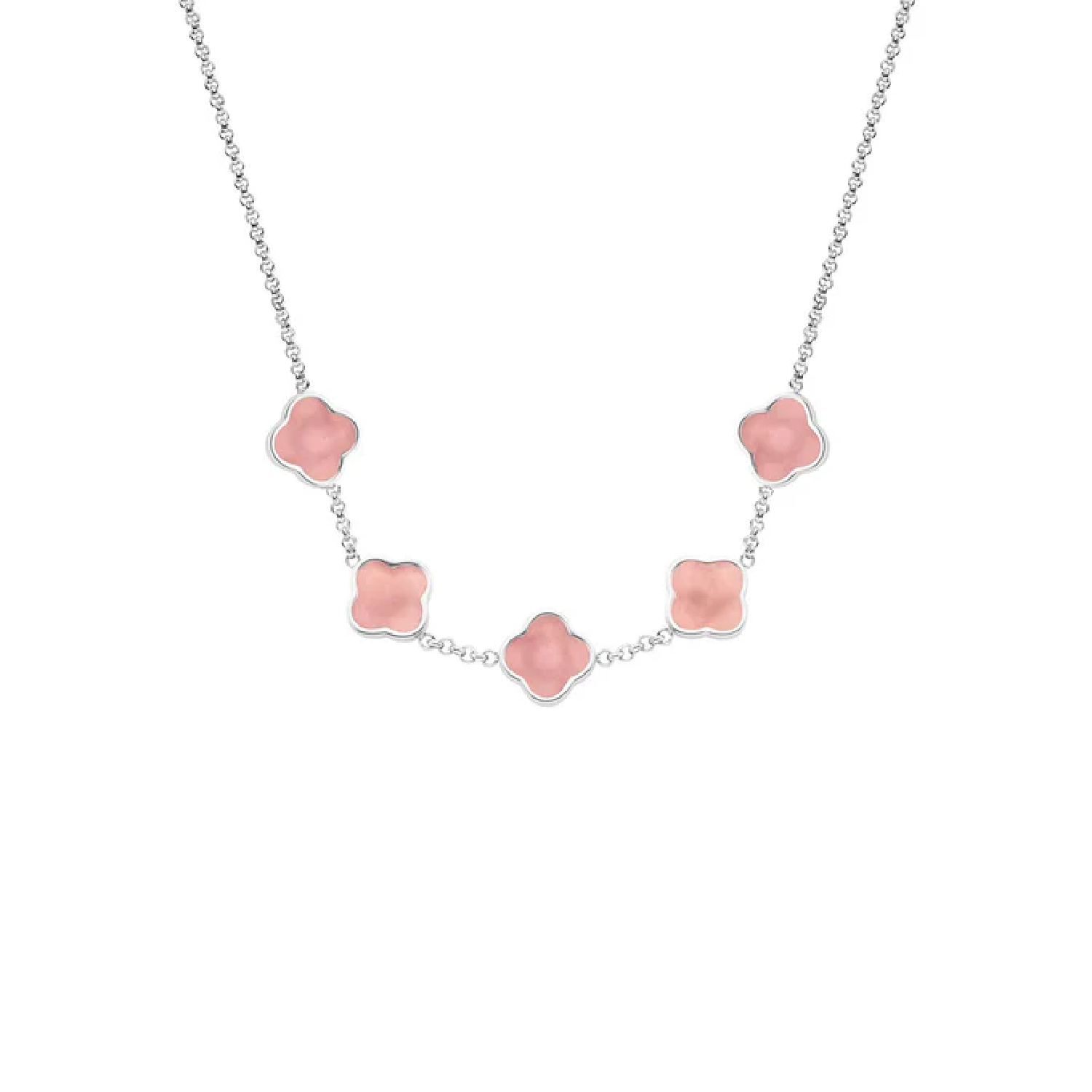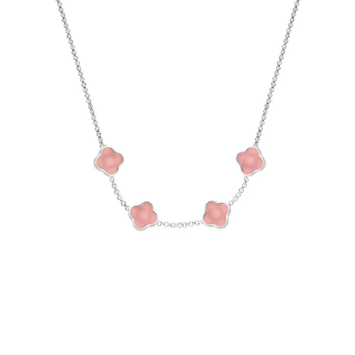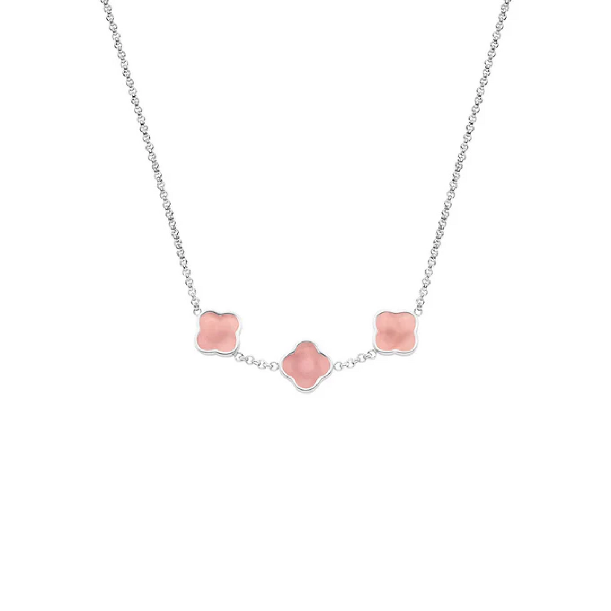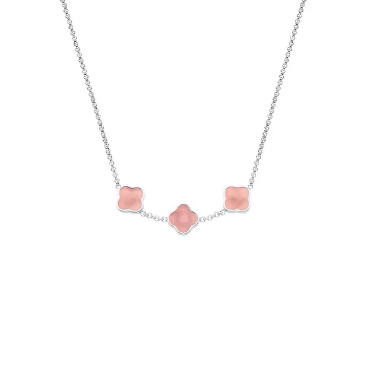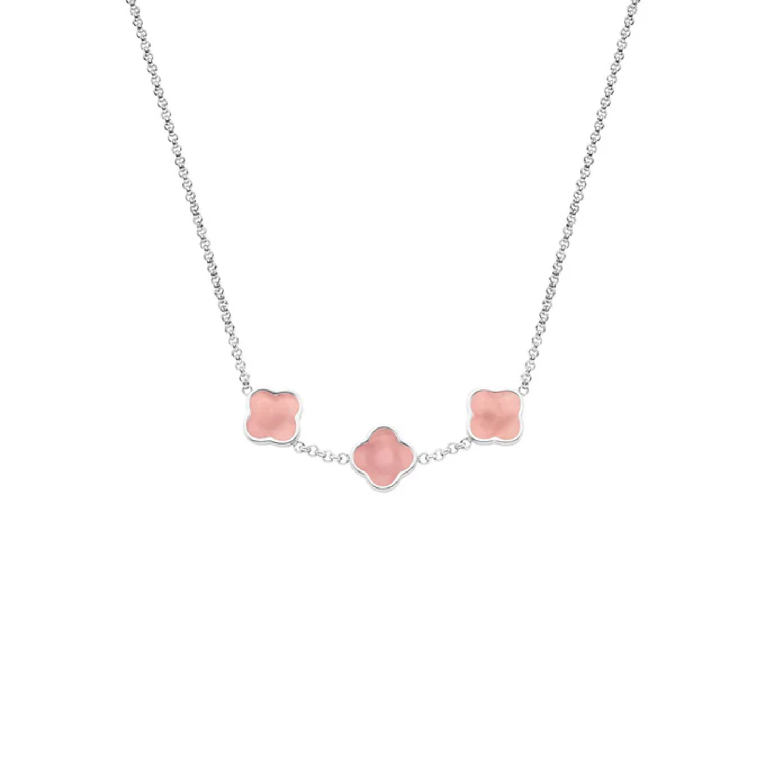 Rose Quartz Clover Custom Name Necklace (Silver)